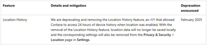 С удалением API разработчикам, использующим Windows.Devices.Geolocation, необходимо пересмотреть реализацию своих приложений и отказаться от GetGeopositionHistoryAsync, чтобы избежать возможных сбоев. Кроме того, настройка управления историей местоположений исчезнет из раздела «Конфиденциальность и безопасность» в параметрах Windows.