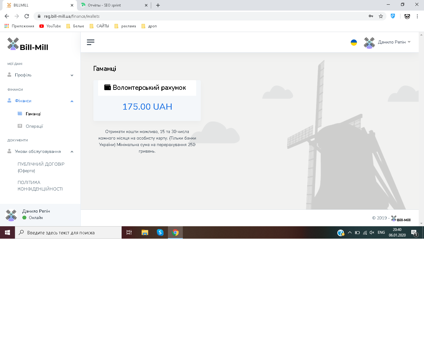 Для того, чтобы в полной мере пользоваться возможностями BillMill, необходимо завершить регистрацию. Для этого Подтвердите свою электронную почту и номер телефона.