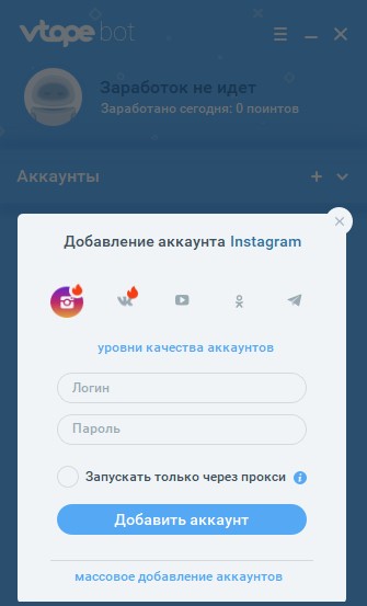 Итак, бот установлен, аккаунты готовы для заработка. Приступим к самому процессу.