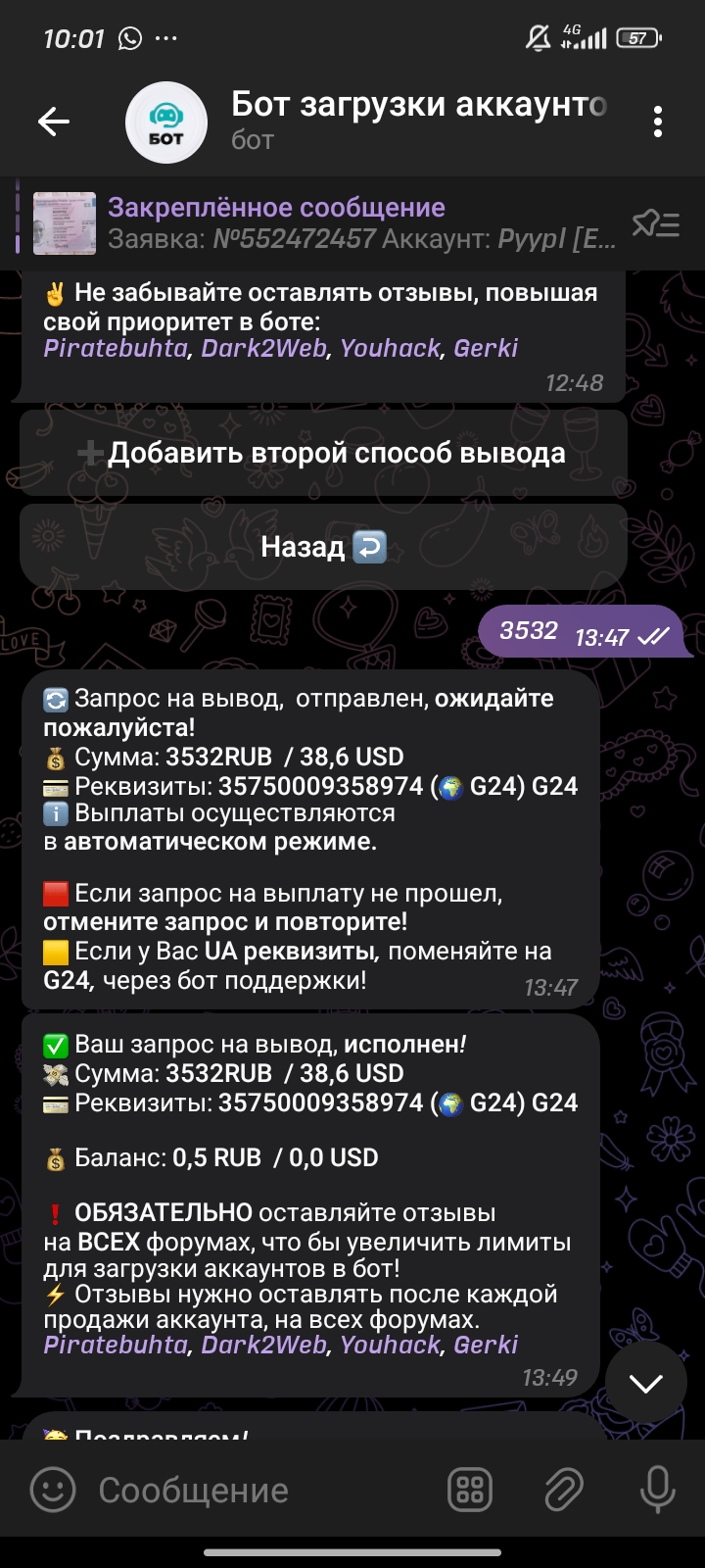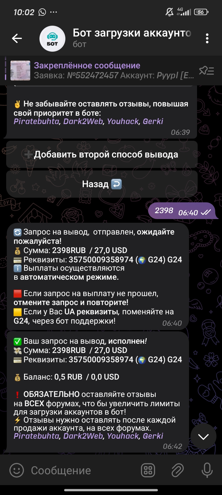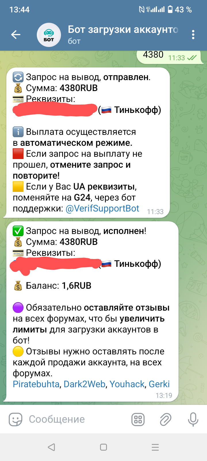 evilbos Новорег 17 0 30 Мар 2024 11 Сен 2024 #1,020 Продала в этом боте уже который аккаунт,все просто супер,выплаты быстрые! Вложения Screenshot_20240911_125044_Telegram.jpg 270.5 KB Скачано: 69