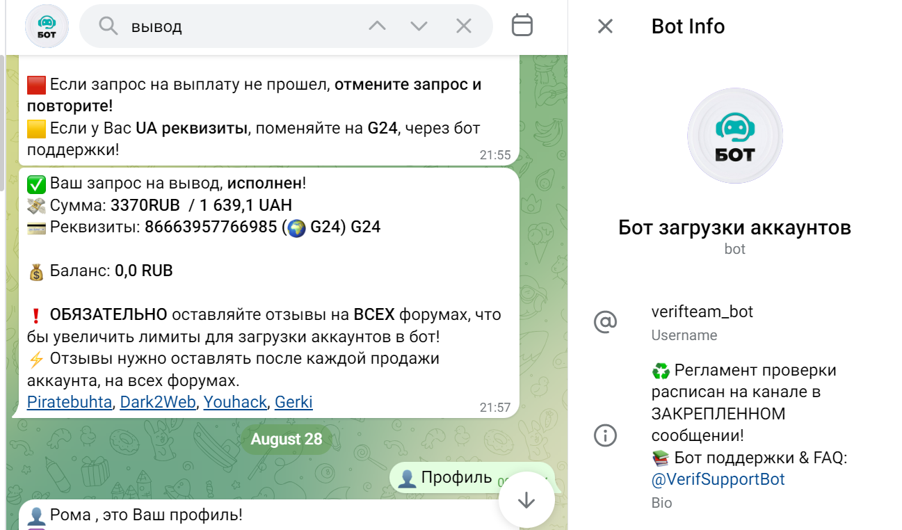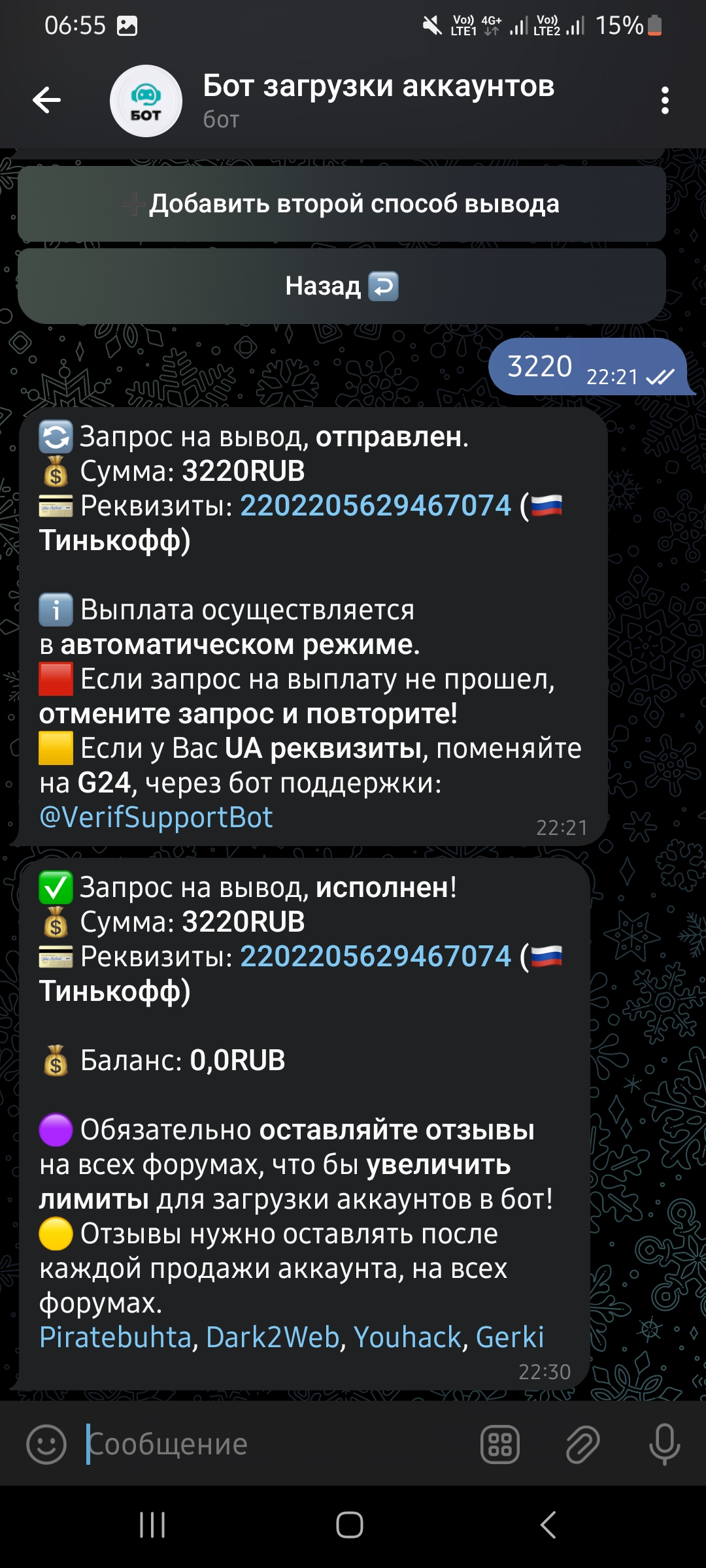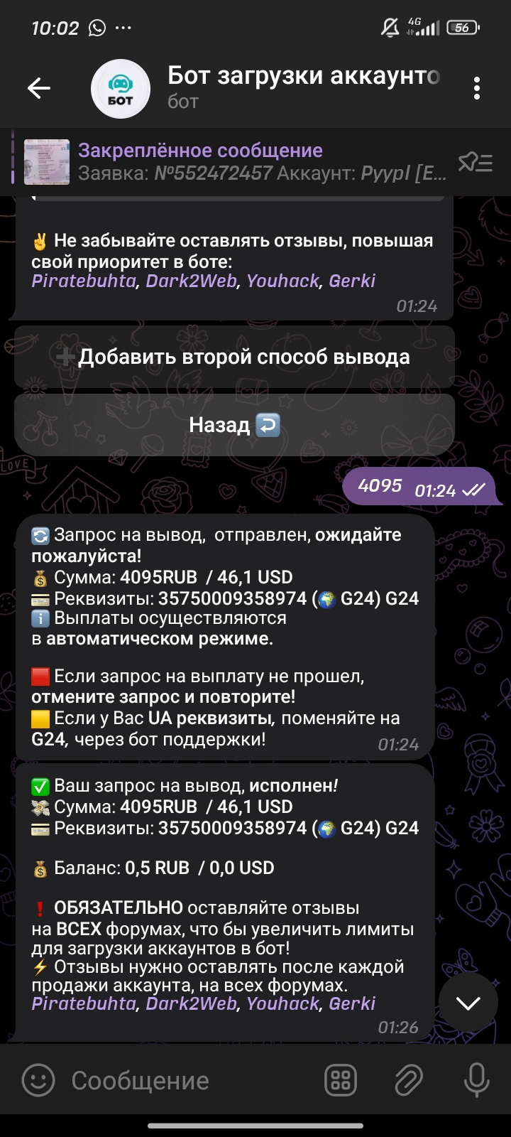 evilbos Новорег 17 0 30 Мар 2024 11 Сен 2024 #1,020 Продала в этом боте уже который аккаунт,все просто супер,выплаты быстрые! Вложения Screenshot_20240911_125044_Telegram.jpg 270.5 KB Скачано: 69