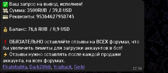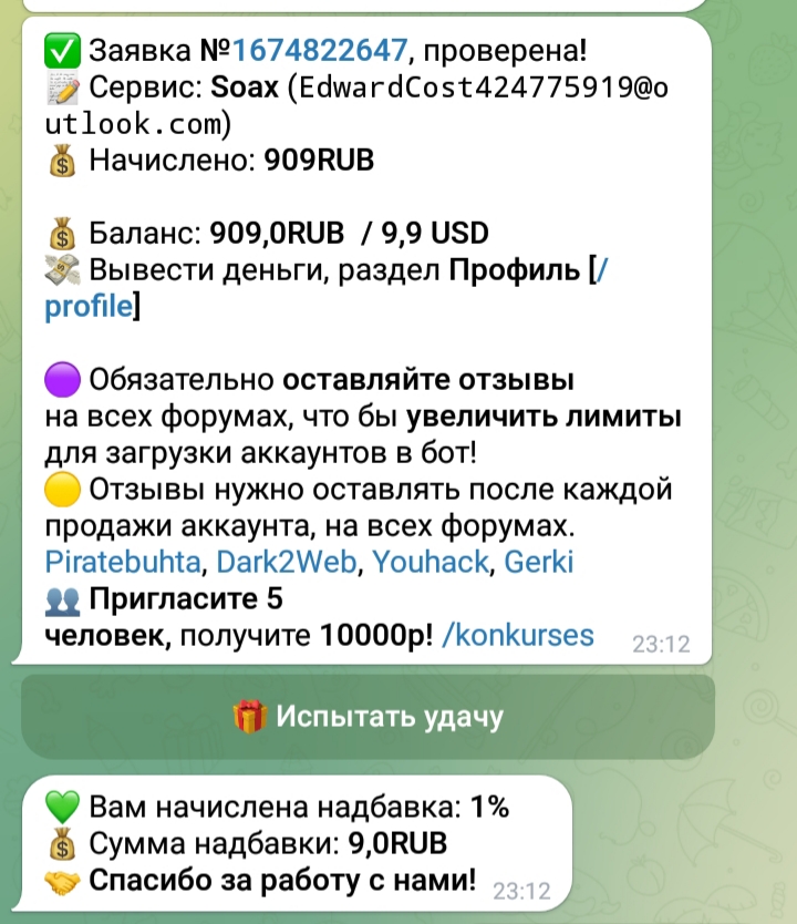 Бот чётко работает - проверил, или написал, что нужно изменить в профиле либо сразу выводи себе оплату)