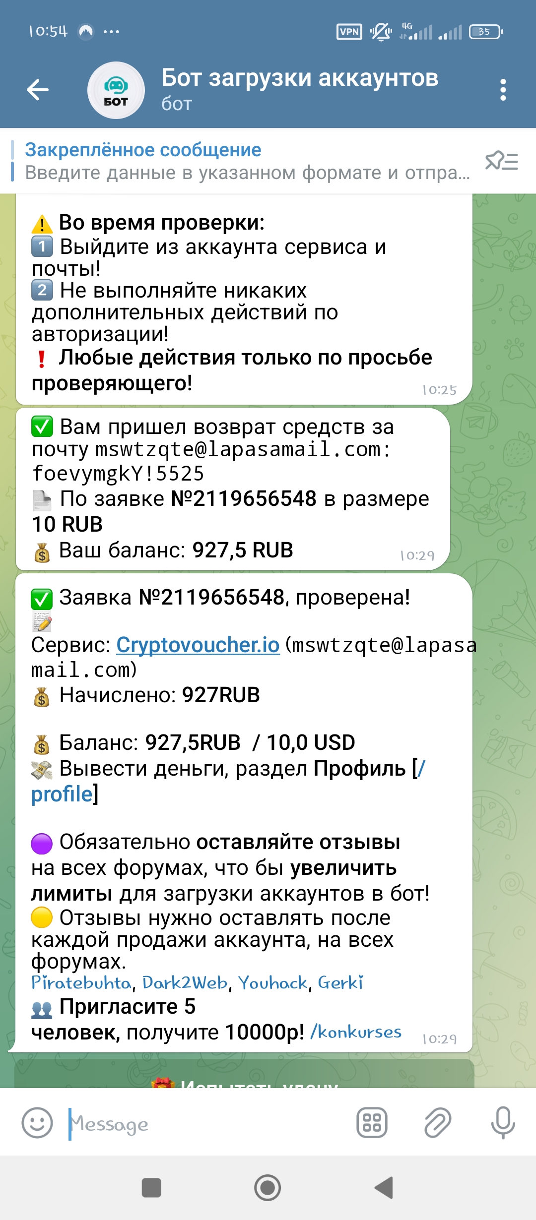 Последняя сдача аккаунта. Пришлось подождать на самом сервисе проверку до 5 дней, но это не проблема бота)