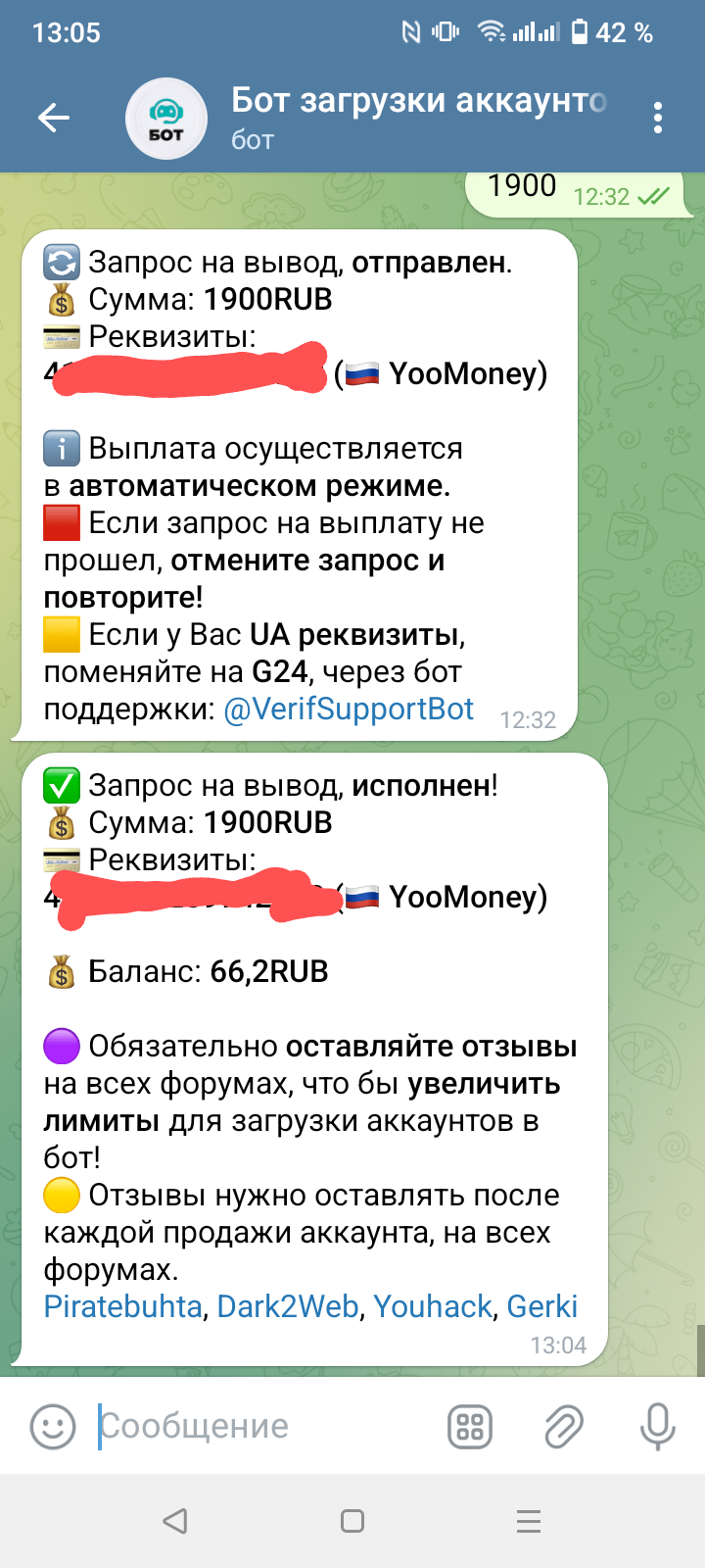 Anna1808 Новорег 22 0 8 Окт 2024 12 Окт 2024 #1,090 Бот работает отлично, вчера продала ещё аккаунт, выплатили как всегда моментально.