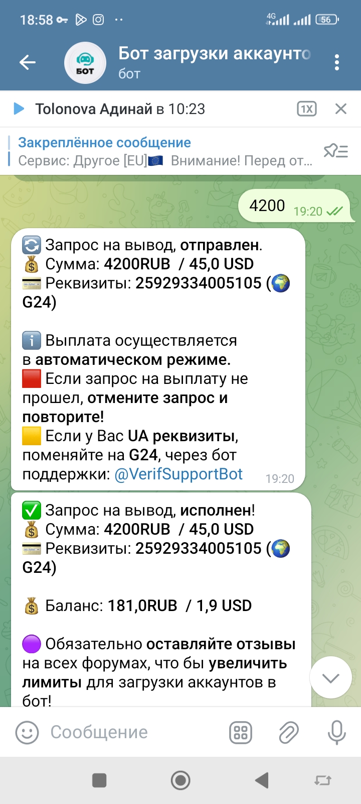 Получила ещё одну выплату. Всё хорошо. Бот супер.