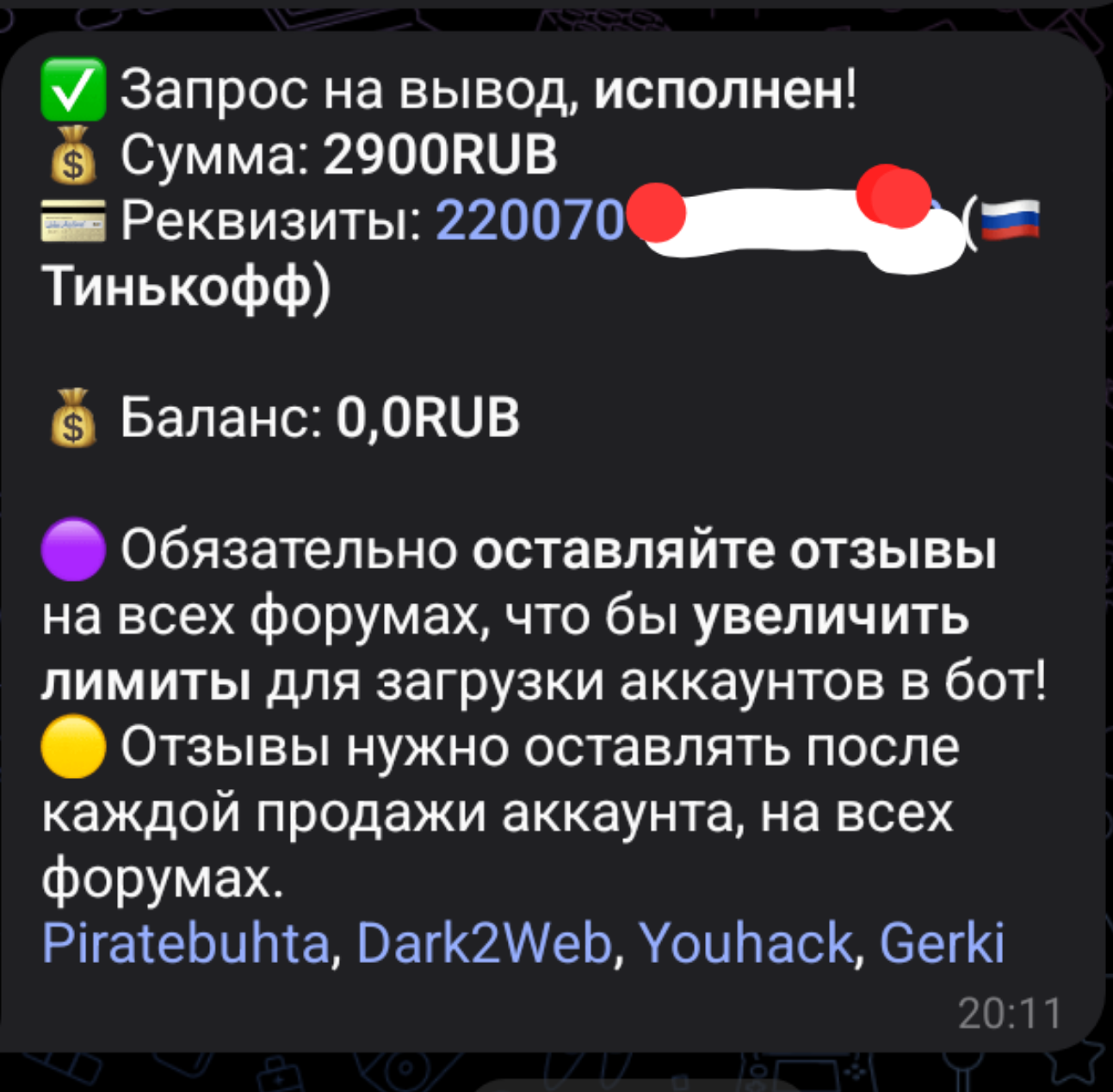 secure_sec Новорег 99 0 13 Авг 2024 11 Окт 2024 #1,089 Продолжаем работать,продажа+выплата! Вложения Screenshot_20241011_204048_Telegram.jpg 239.8 KB Скачано: 91 Screenshot_20241011_204118_Telegram.jpg 109 KB Скачано: 98