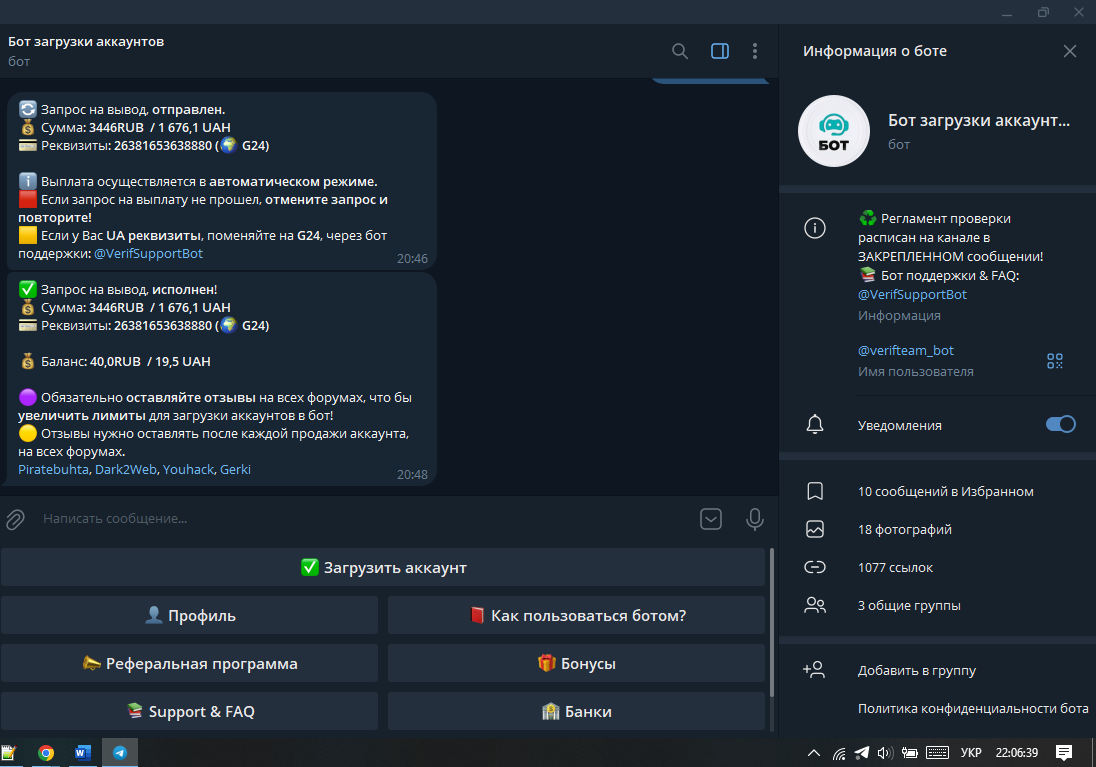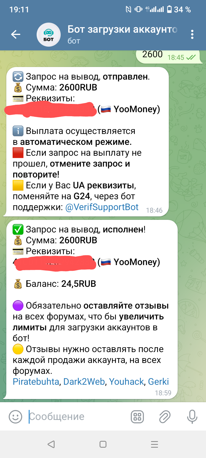 Выплата из бота. Там теперь создали новый чат персональных заявок, и цены намного выше чем в обычном канале актуальных заявок, организаторам спасибо, идея супер) вывод на юмани быстрый