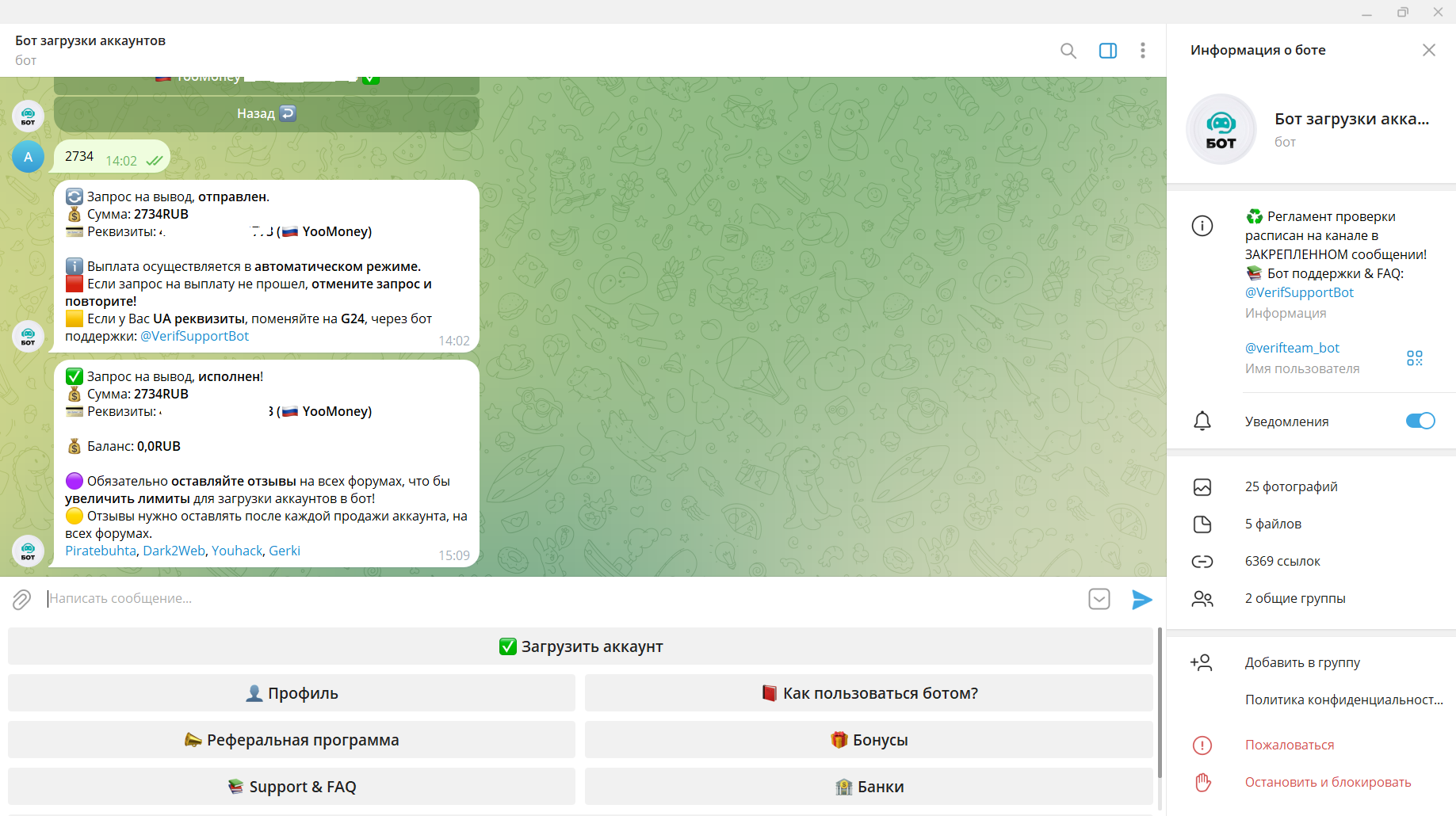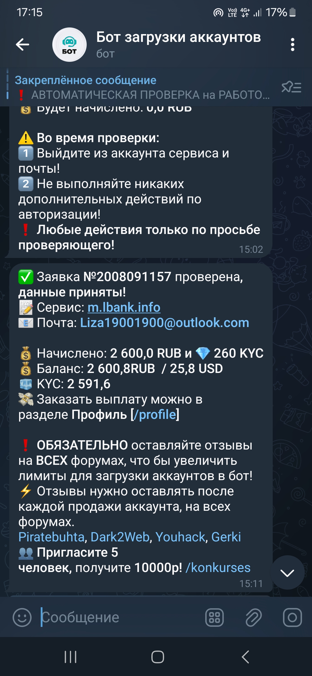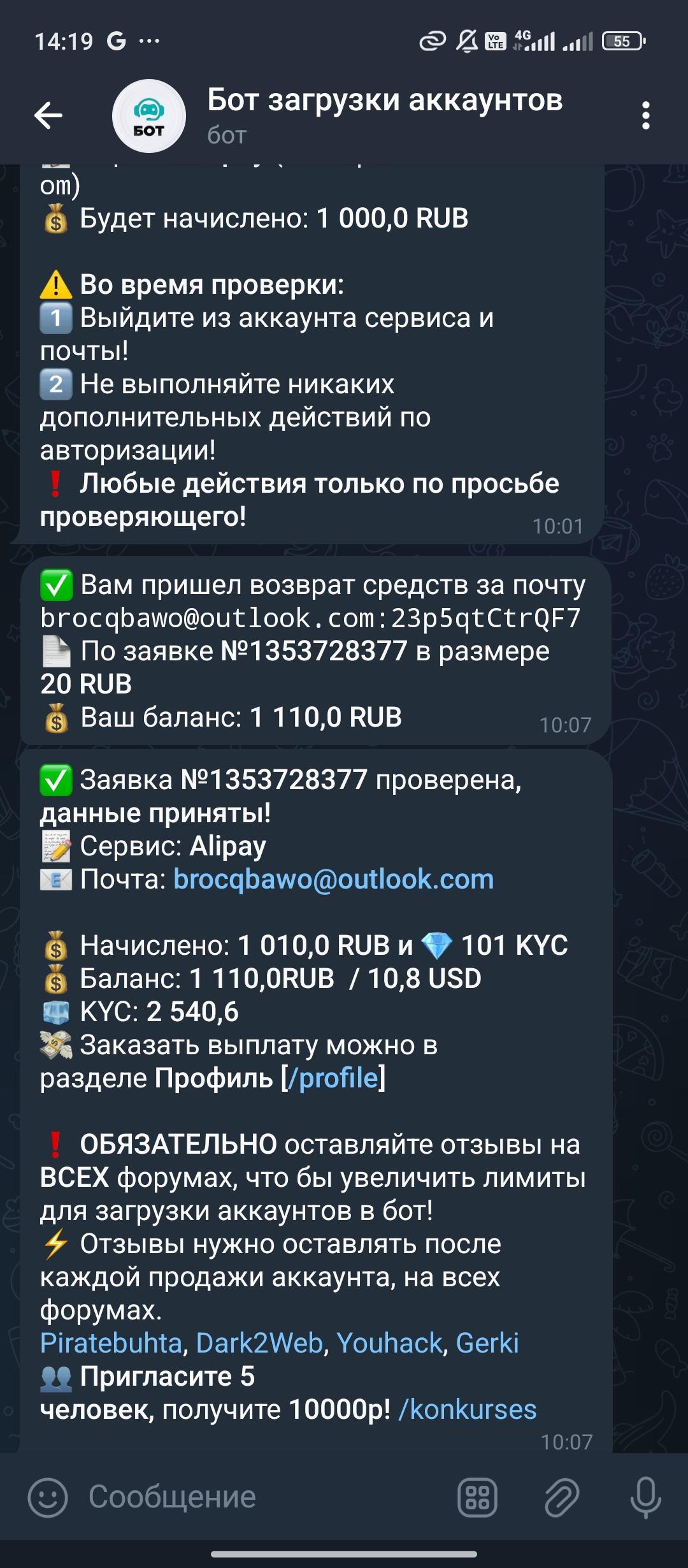 L L1bertt Новорег 47 0 2 Июл 2023 22 Ноя 2024 #1,203 Советую всем этого бота, за 2 дня - 20к рублей заработано, удачи всем в апрувах