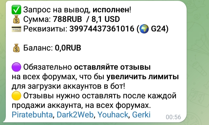 atlet190 Новорег 220 0 9 Фев 2023 8 Дек 2024 #1,236 И снова хорошая выплата за аккаунты, бот огонь) Вложения image-08-12-24-06-17.png 74 KB Скачано: 91 Снимок экрана (1043).png 550.6 KB Скачано: 93