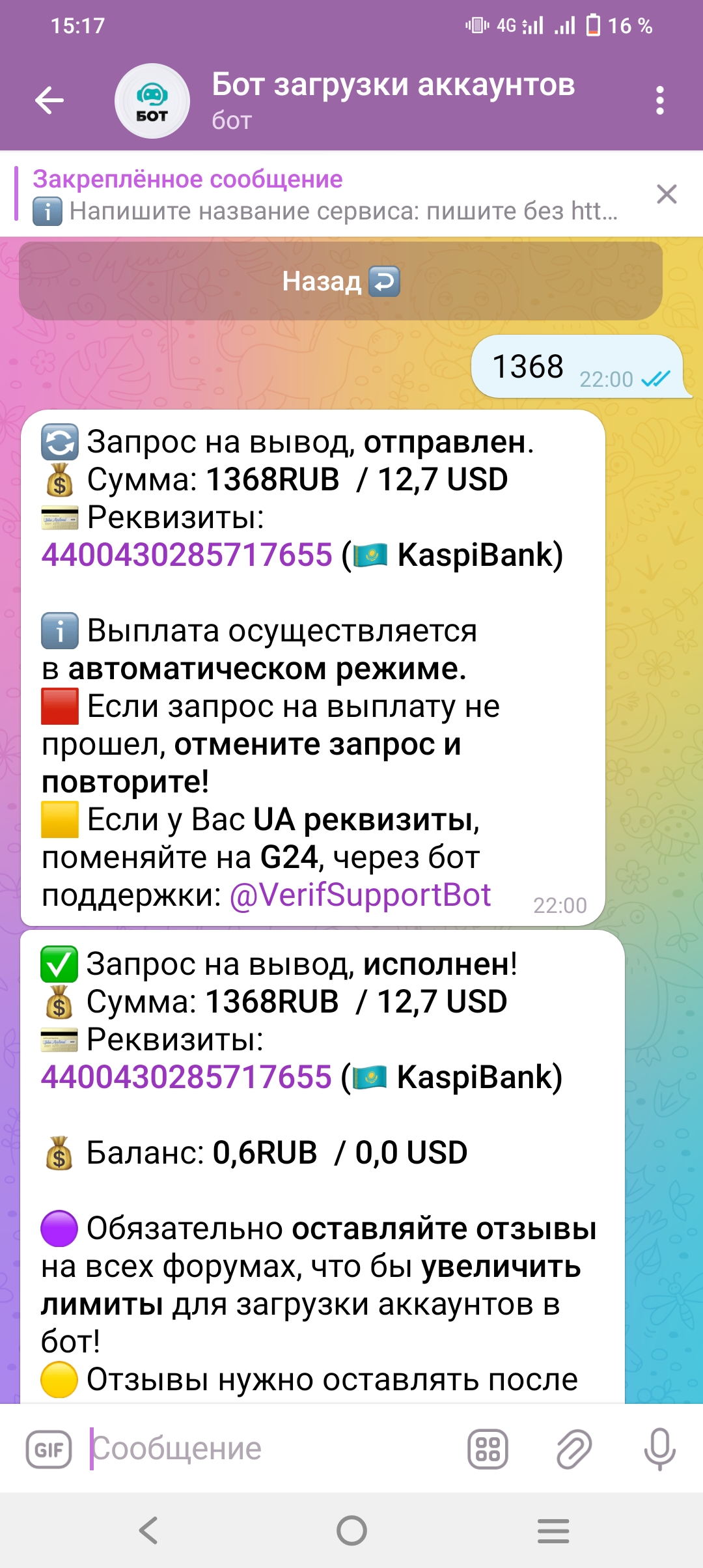 Verificator написал(а): Посмотреть вложение 17806 Посмотреть вложение 17807 Нажмите для раскрытия... Еще один успешный вериф и оплата хороший.Вывела,моментально пришли на карту