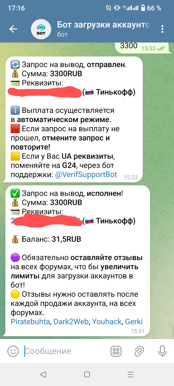 Verificator написал(а): Посмотреть вложение 17806 Посмотреть вложение 17807 Нажмите для раскрытия... Спасибо большое боту за работу.Получила ввплату как всегда быстро!