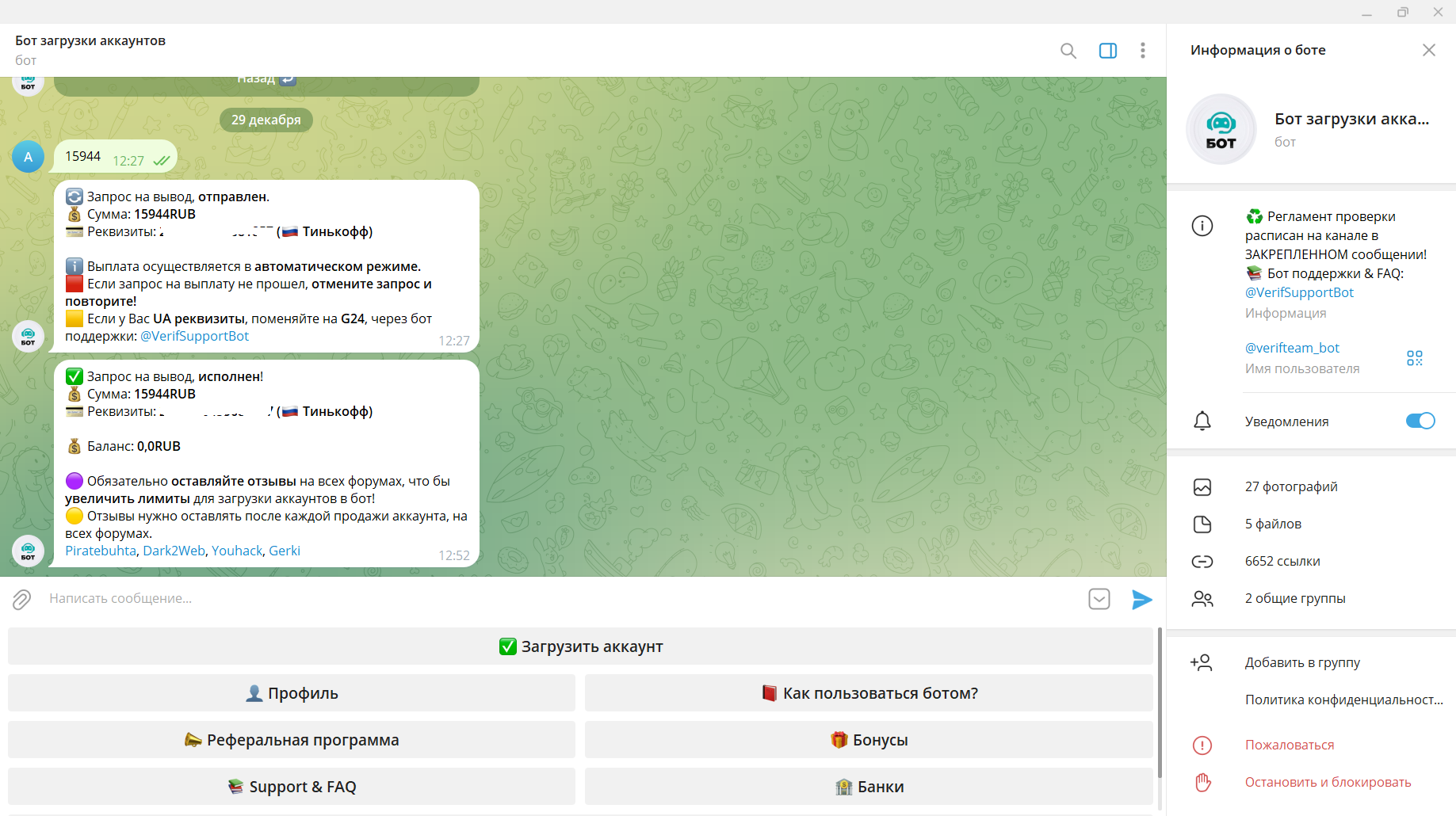 Спасибо большое боту за работу.Получила ввплату как всегда быстро!