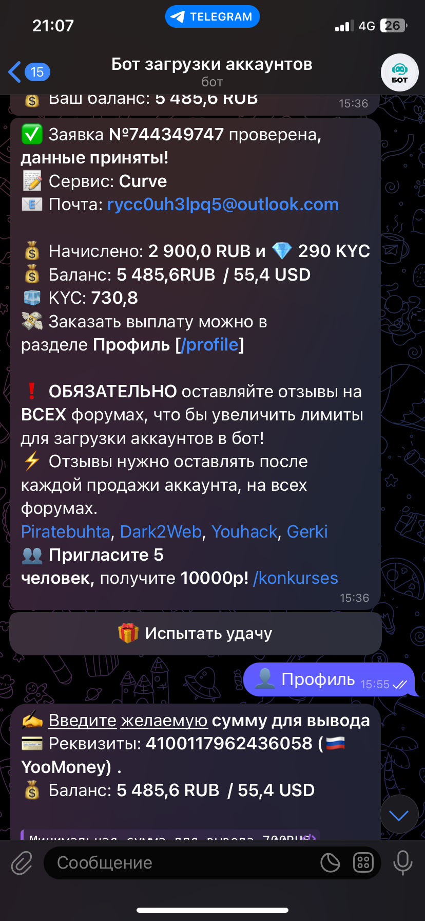 Продаётся который уже аккаунт в данном боте,спасибо просто лучшие цены!