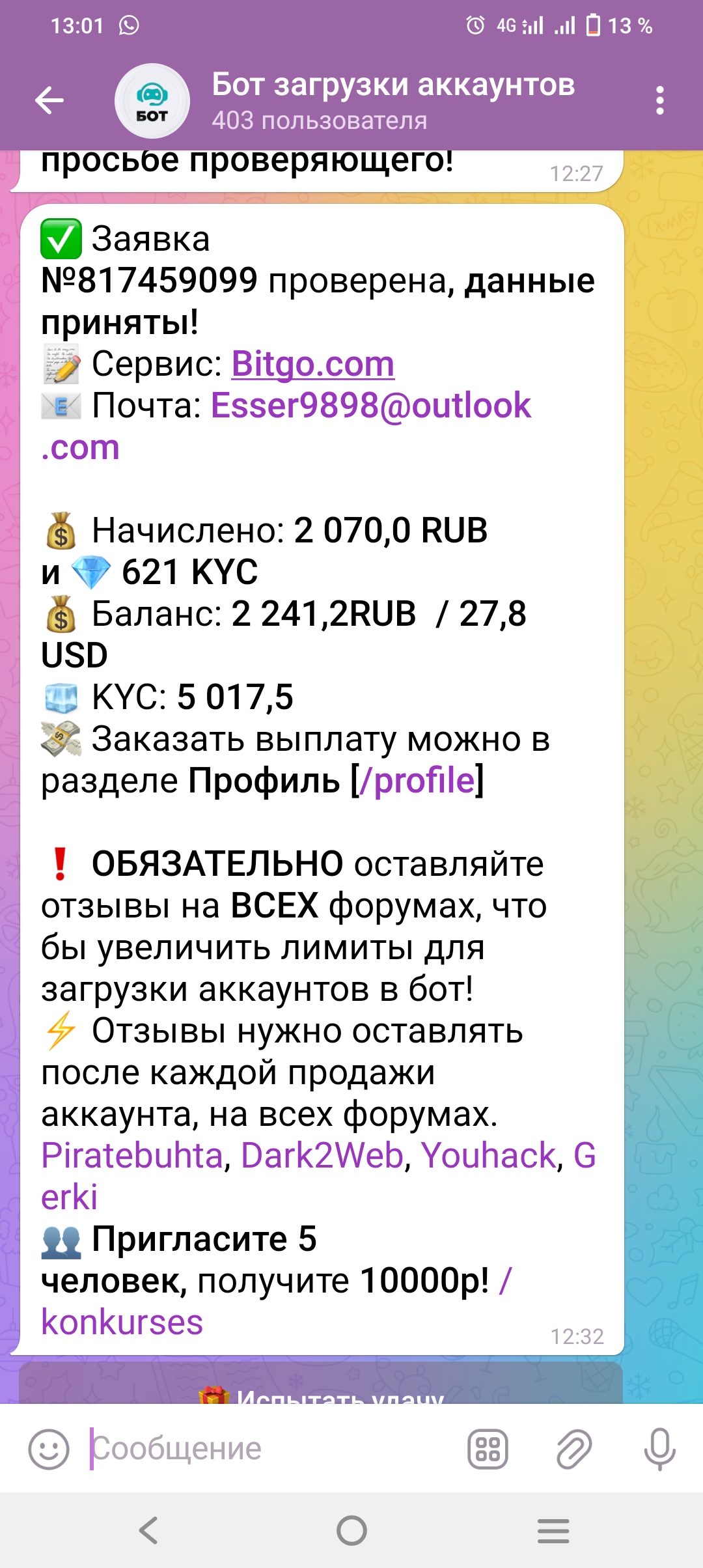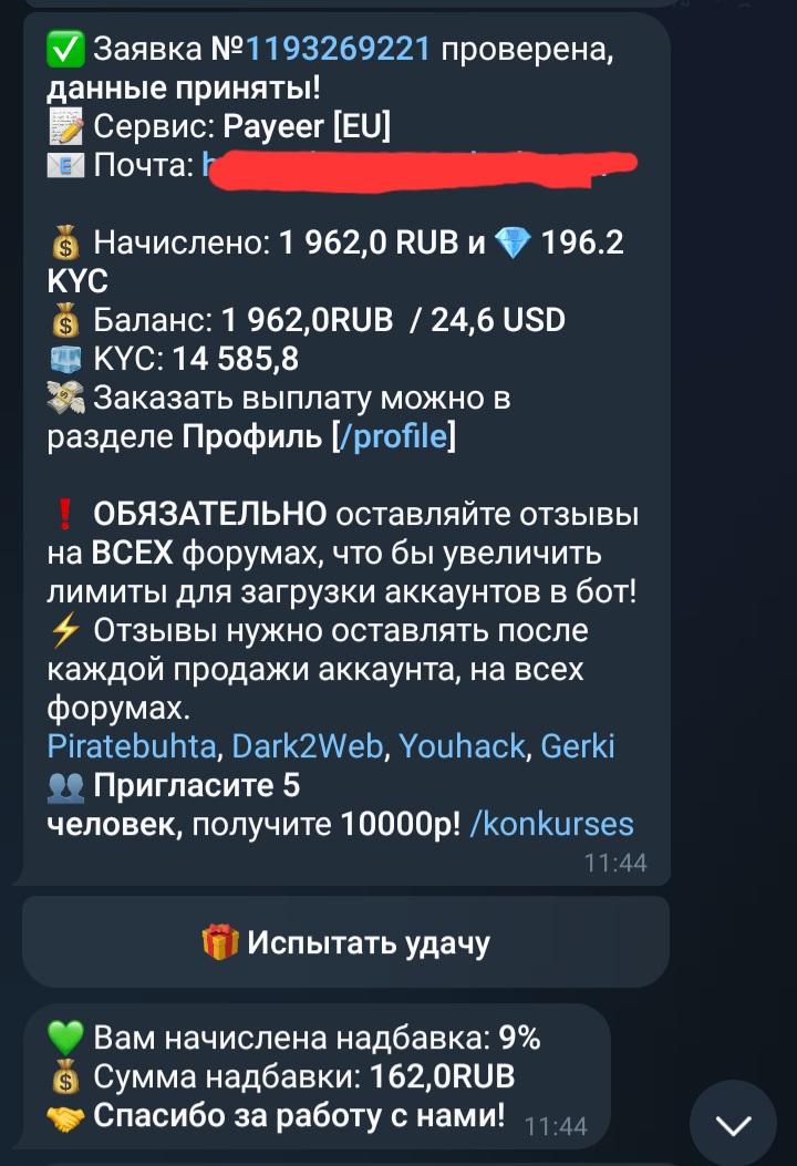 secure_sec Новорег 82 0 13 Авг 2024 30 Окт 2025 #1,824 Работаем,все просто на высоте продал аккаунтов и получил выплату моментом. Вложения Screenshot_20251030_190923_Telegram.jpg 197.3 KB Скачано: 23 Screenshot_20251030_190947_Telegram.jpg 165.8 KB Скачано: 21 Screenshot_20251030_191009_Telegram.jpg 186.3 KB Скачано: 24 Screenshot_20251030_190933_Telegram.jpg 104 KB Скачано: 20 Screenshot_20251030_190957_Telegram.jpg 102 KB Скачано: 22 Screenshot_20251030_191018_Telegram.jpg 101.5 KB Скачано: 22