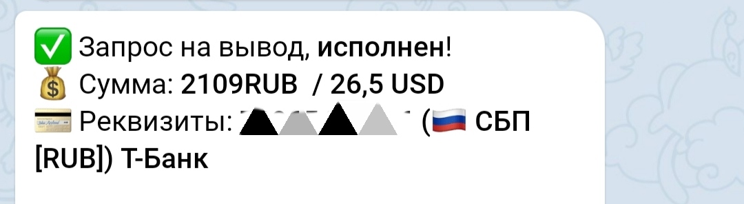 mak988 Участник 133 2 10 Фев 2023 31 Окт 2025 #1,825 Спасибо за очередную выплату от бота! Как всегда, все отлично! Вложения 2025-10-31_08-03-25.png 464.1 KB Скачано: 22 photo_2025-10-31_08-07-14.jpg 39.3 KB Скачано: 21