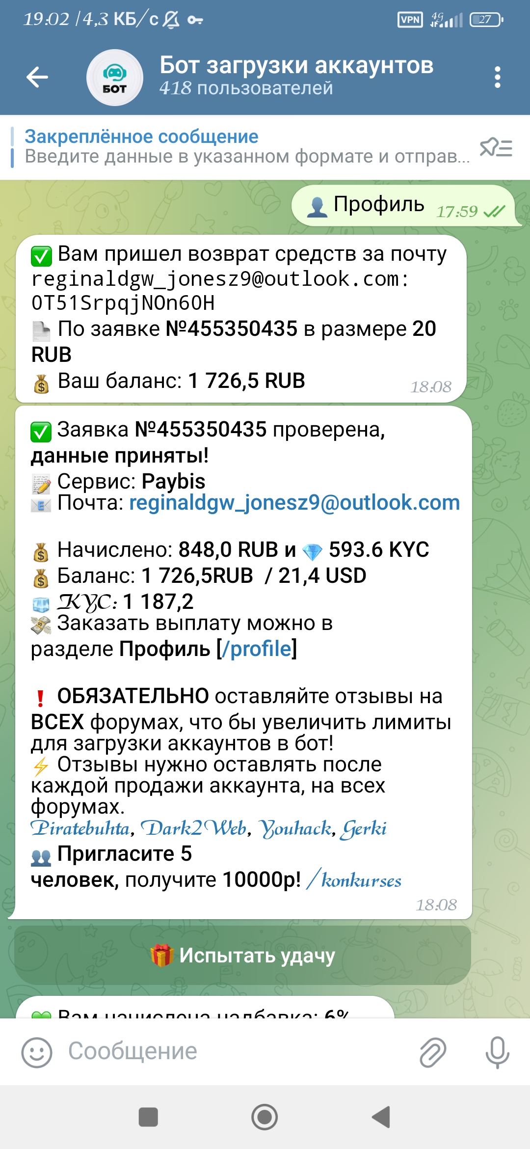 secure_sec Новорег 82 0 13 Авг 2024 17 Ноя 2025 #1,870 Продал ещё в данном боте,выплату получил как и было положенно,рекомендую. Вложения Screenshot_20251112_105630_Telegram.jpg 171.6 KB Скачано: 12 Screenshot_20251112_131314_Telegram.jpg 109.6 KB Скачано: 11
