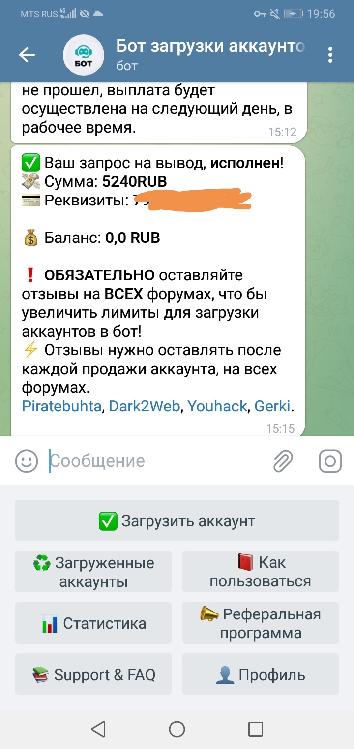 legmus Новорег 11 0 28 Фев 2023 9 Мар 2023 #196 Выплата за аккаунт Blackcatcard DE +4000р. Благодарю.