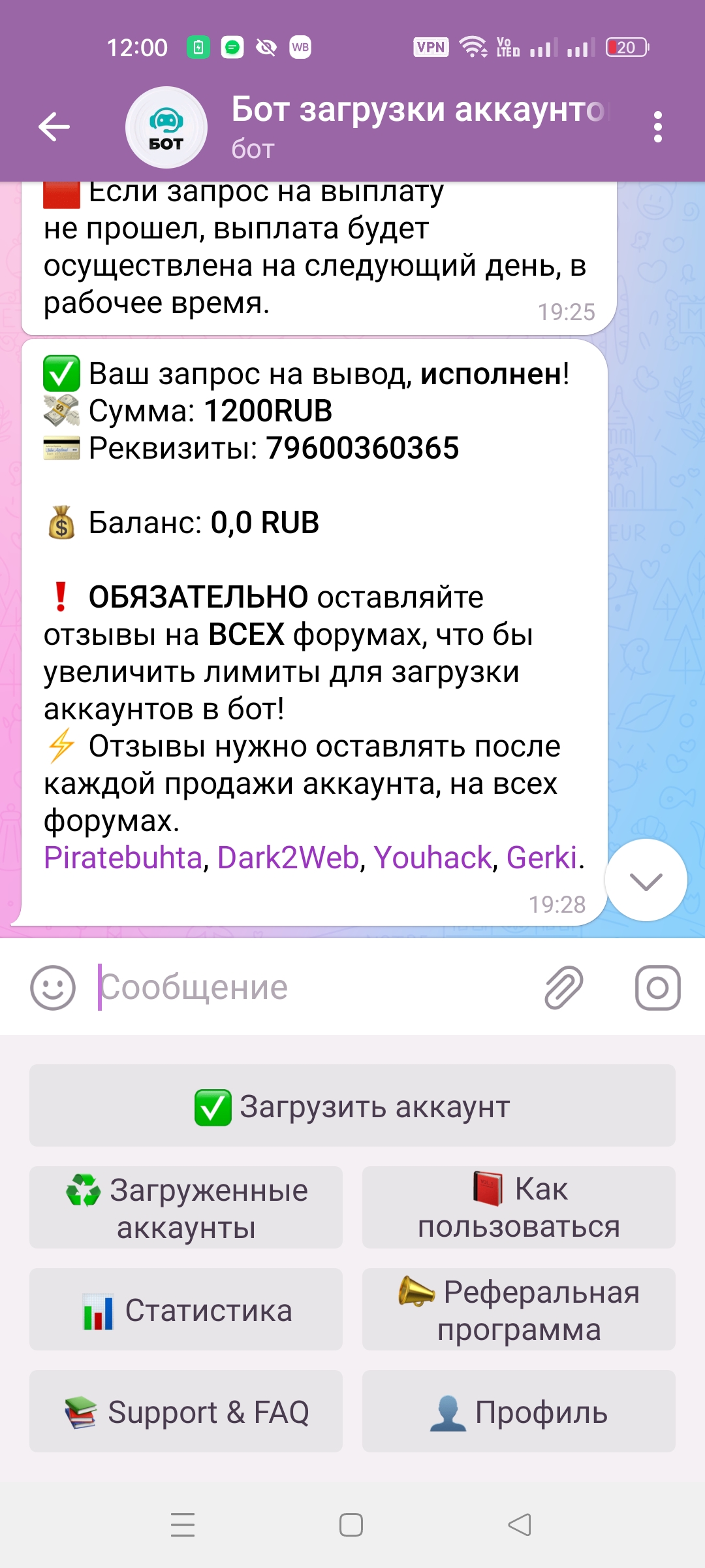 D Danylo Sumotov Новорег 9 0 25 Фев 2023 7 Мар 2023 #191 Самый лучший бот для верификации такого бота ище нужно поискать... Вложения Screenshot_20230307_120659_Telegram X.jpg 722.9 KB Скачано: 153 Screenshot_20230307_120711_monobank.jpg 189.9 KB Скачано: 148