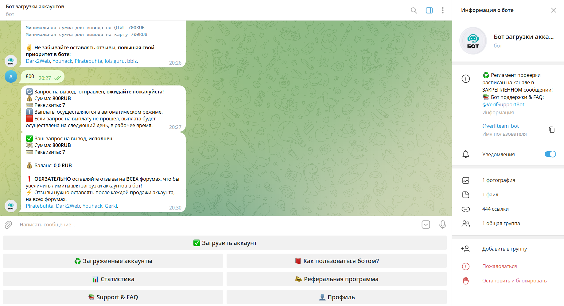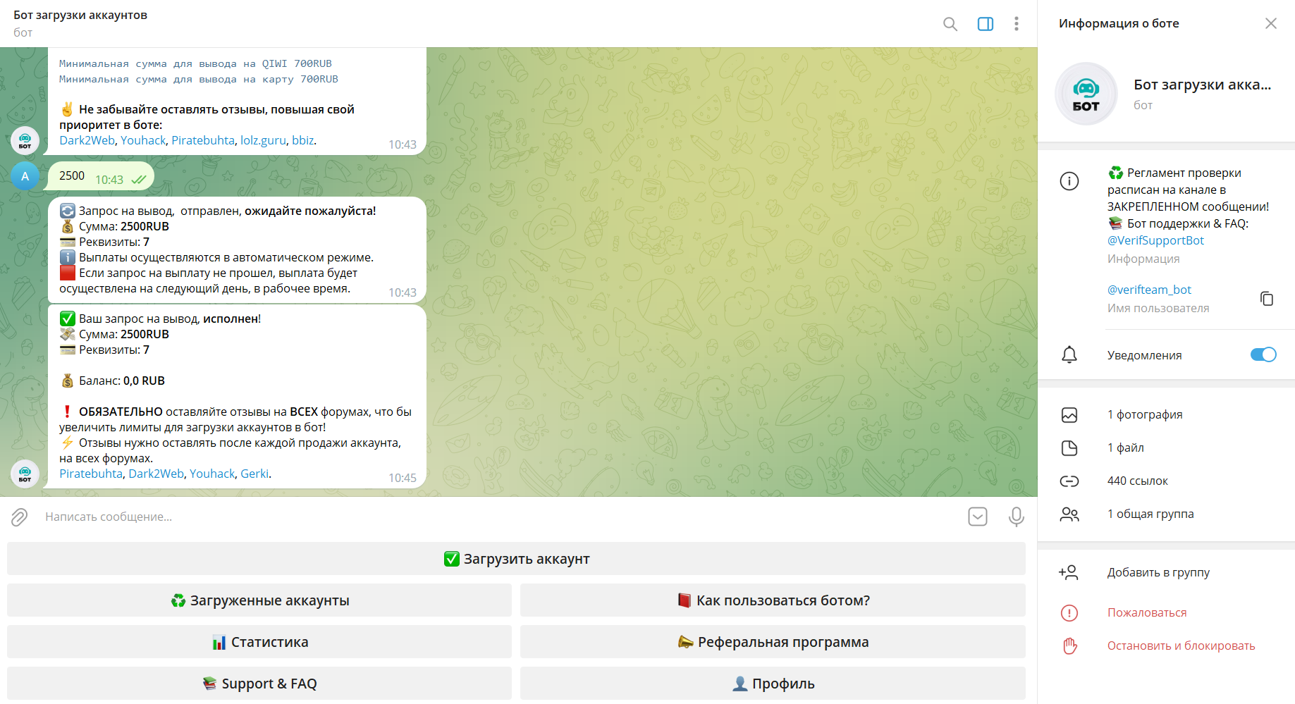 atlet190 Новорег 220 0 9 Фев 2023 16 Мар 2023 #216 Всё быстро проверили и выплатили. Рекомендую данный бот для заработка денег. Всё как всегда честно. Вложения image-15-03-23-11-04.png 67.7 KB Скачано: 132 Снимок экрана (160).png 529.7 KB Скачано: 129