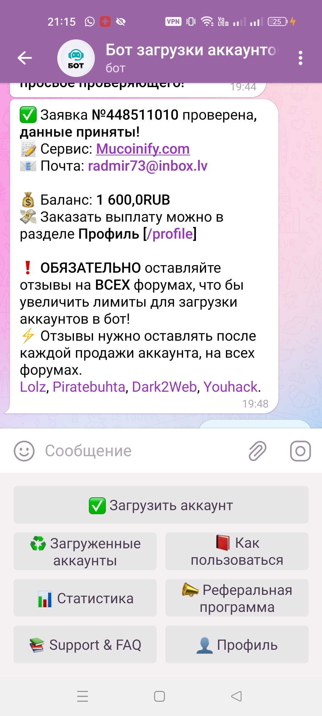 SaNu Новорег 10 0 19 Фев 2023 19 Мар 2023 #218 продала в бот и получила оплату за бинанс плюс, все честно и оперативно Вложения b1.jpg 117.7 KB Скачано: 113 b2.jpg 122.5 KB Скачано: 120 b3.jpg 32 KB Скачано: 123