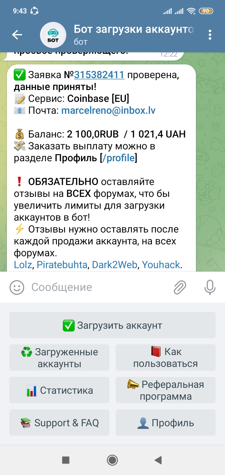 S Serhii_1992 Новорег 10 0 9 Фев 2023 16 Мар 2023 #214 И снова бот радует, получил оплату за два аккаунта. Вложения Screenshot_2023-03-16-09-44-13-398_org.telegram.messenger.jpg 349.2 KB Скачано: 124 Screenshot_2023-03-16-09-43-56-048_org.telegram.messenger.jpg 352.7 KB Скачано: 139 IMG-5e3b137e7da21fccbf9850dcea4fde1c-V.jpg 68.4 KB Скачано: 132