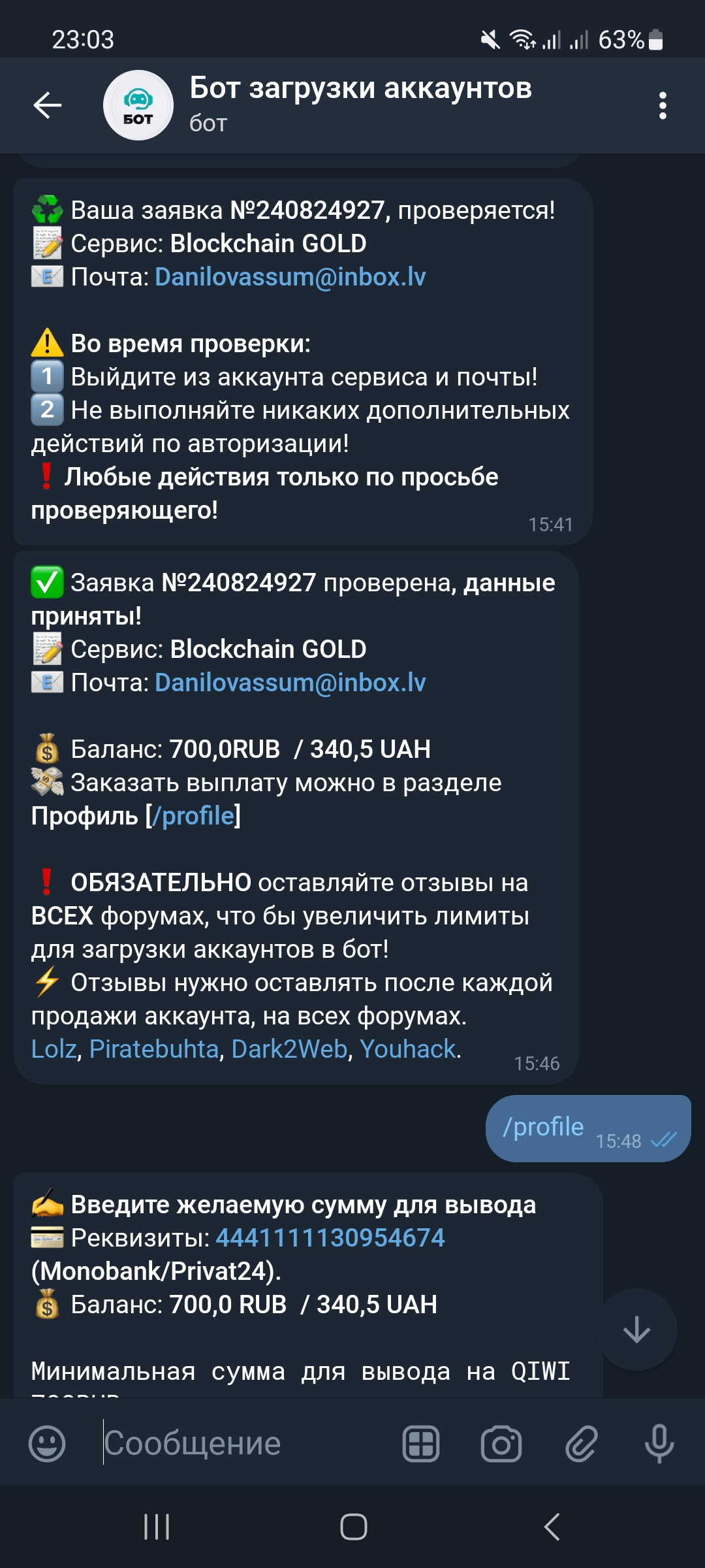 D Danylo Sumotov Новорег 9 0 25 Фев 2023 16 Мар 2023 #215 Я продал ище один аккаунт Верификации очень бистрая Вложения Screenshot_20230316_121948_Telegram X.jpg 652.1 KB Скачано: 130 Screenshot_20230316_122002_monobank.jpg 184.7 KB Скачано: 128