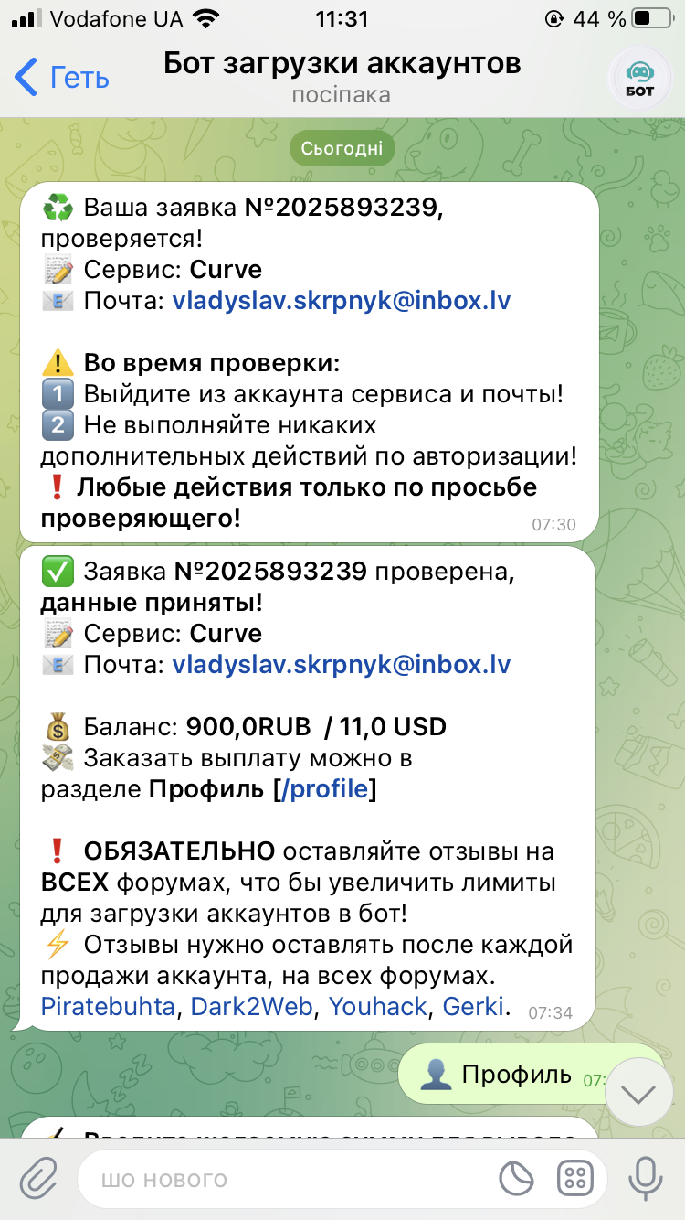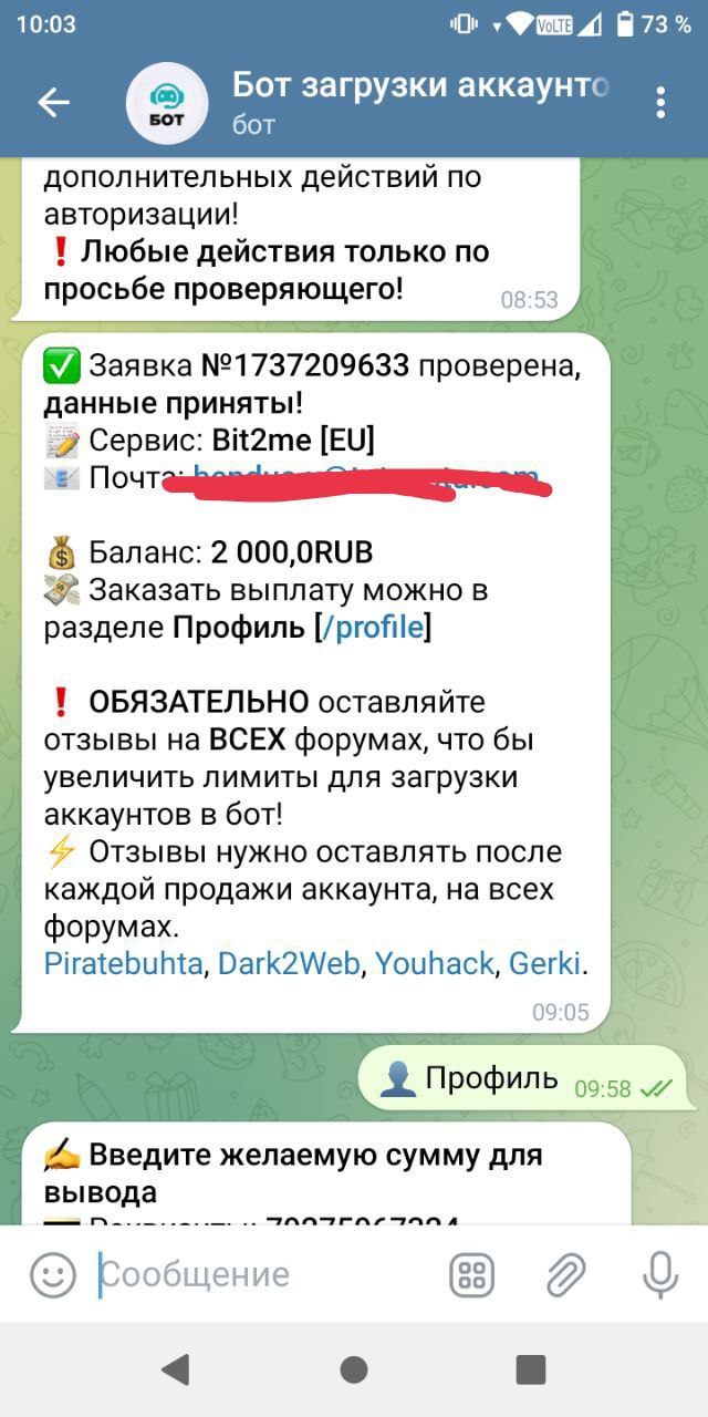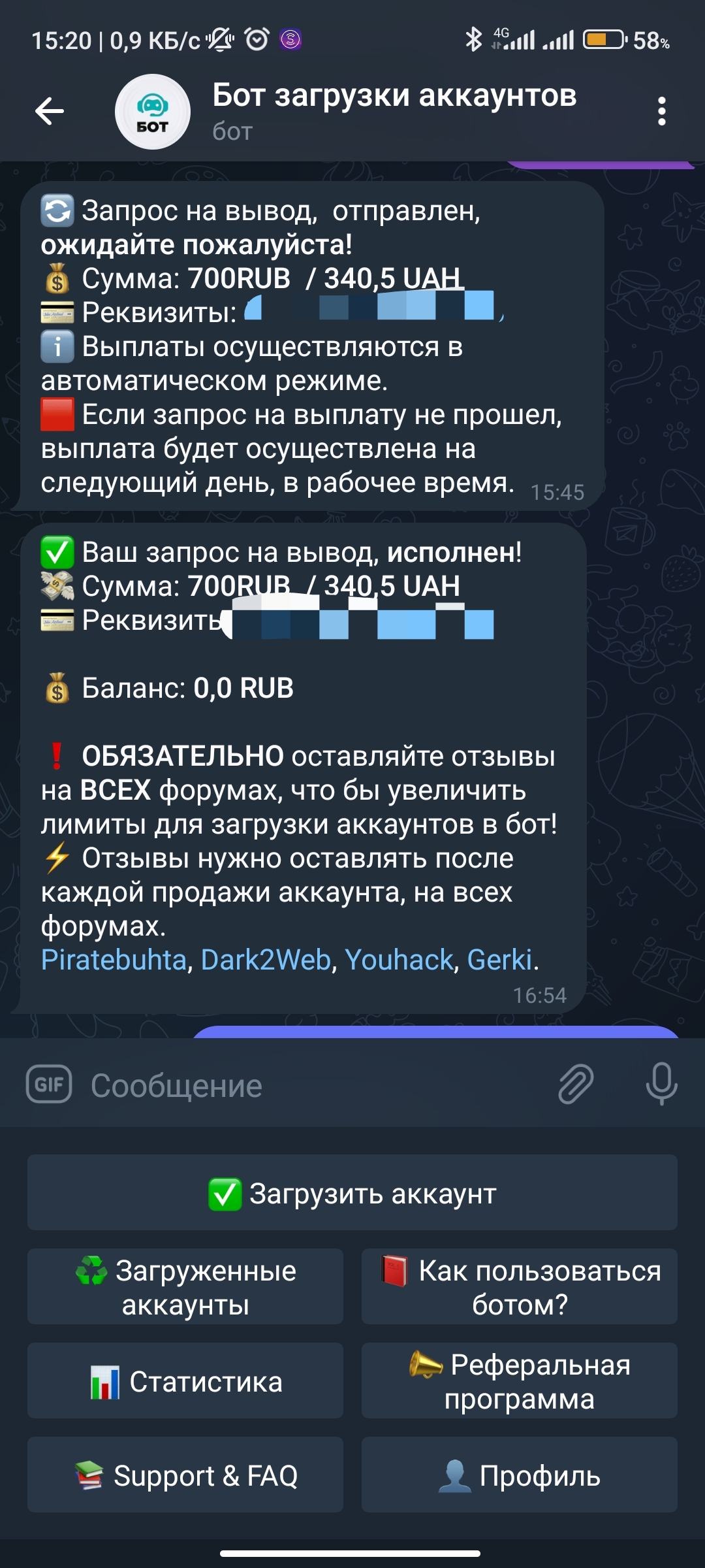 проверили аккаунт за 10 минут, вывелись так же быстро, рекомендую данный бот тем кто ещё не присоединился)