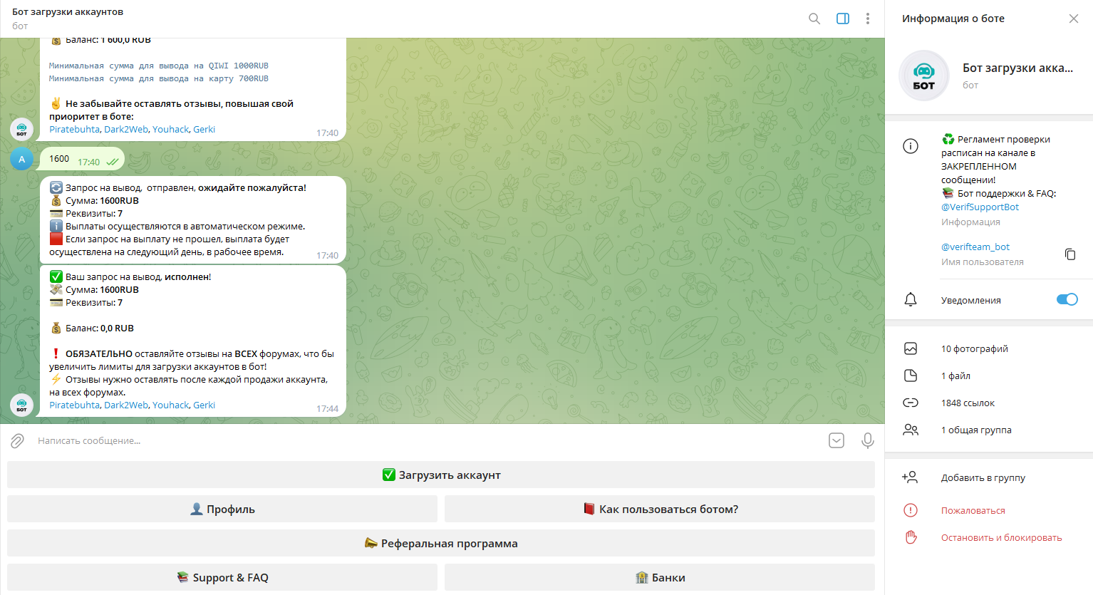 Бот как всегда радует скоростью проверки аккаунта и скоростью выплаты!) продолжаю работать дальше и всем советую!