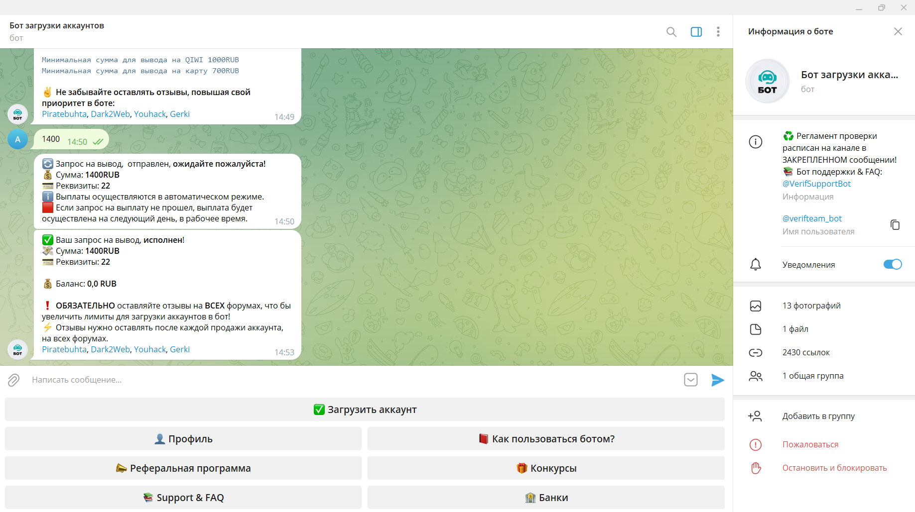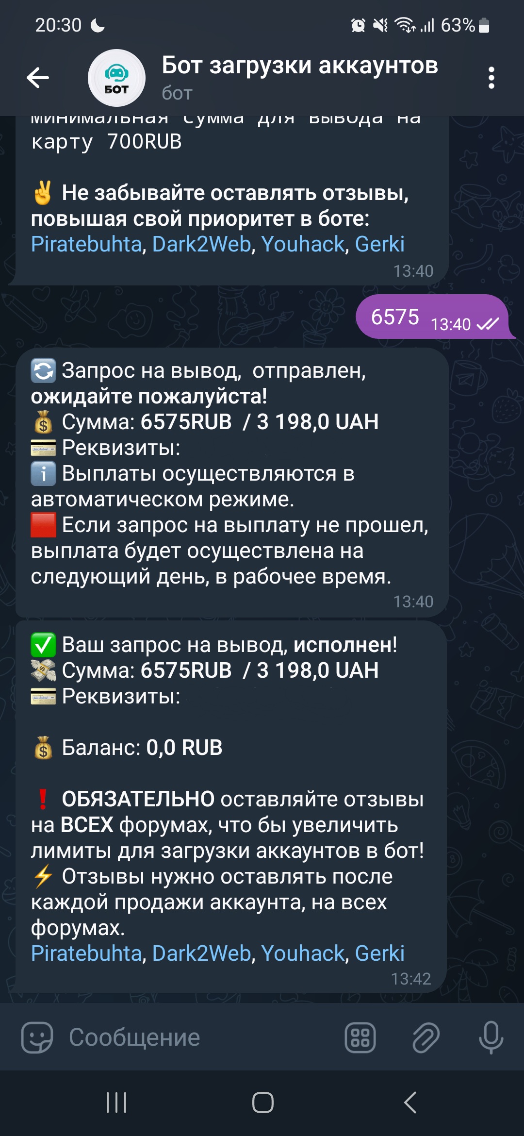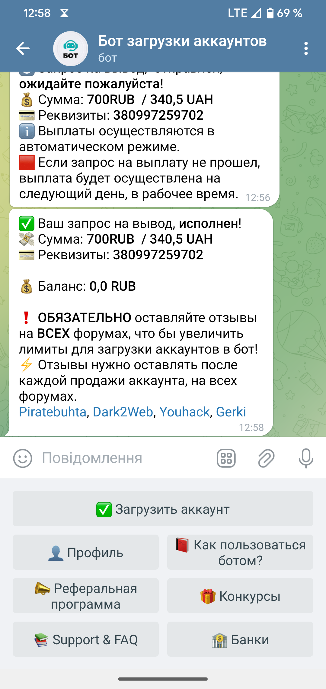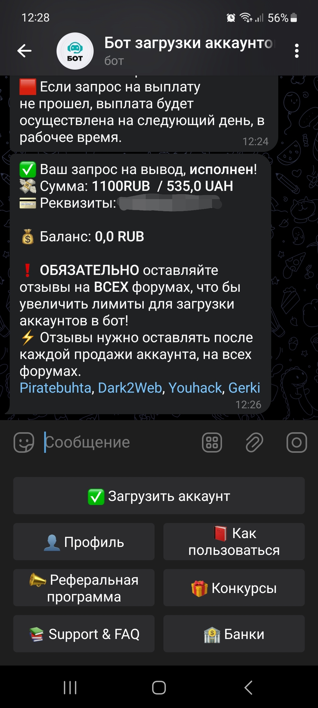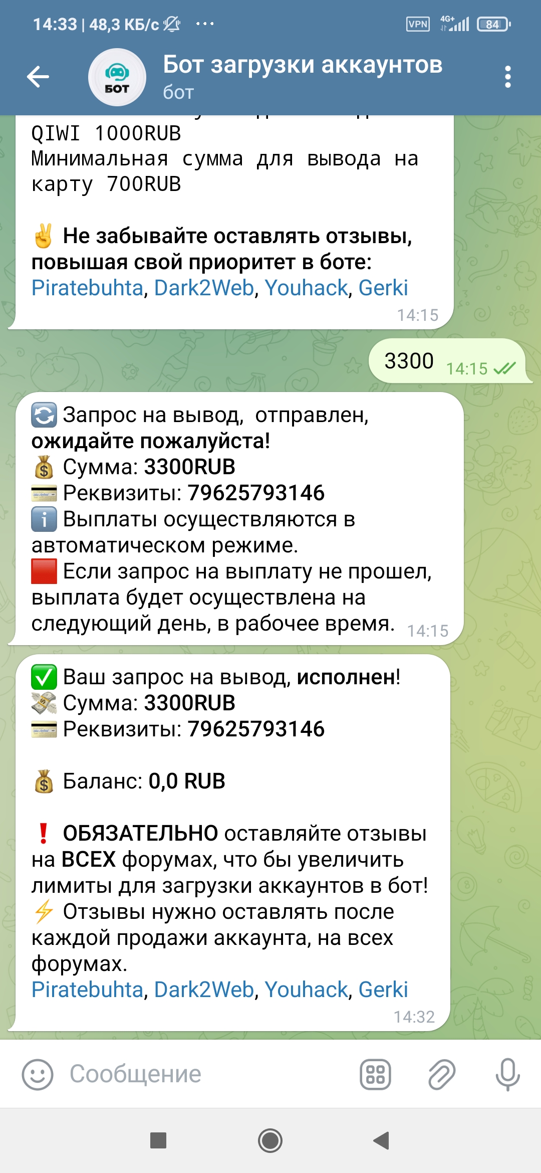 Очередная оплата залетела. Всё быстро и без проблем. Спасибо ребятам, работаем дальше, бот лучший! Всем рекомендую работать с данным сервисом!