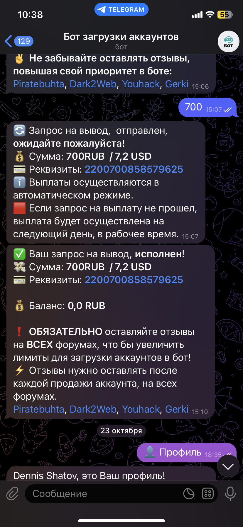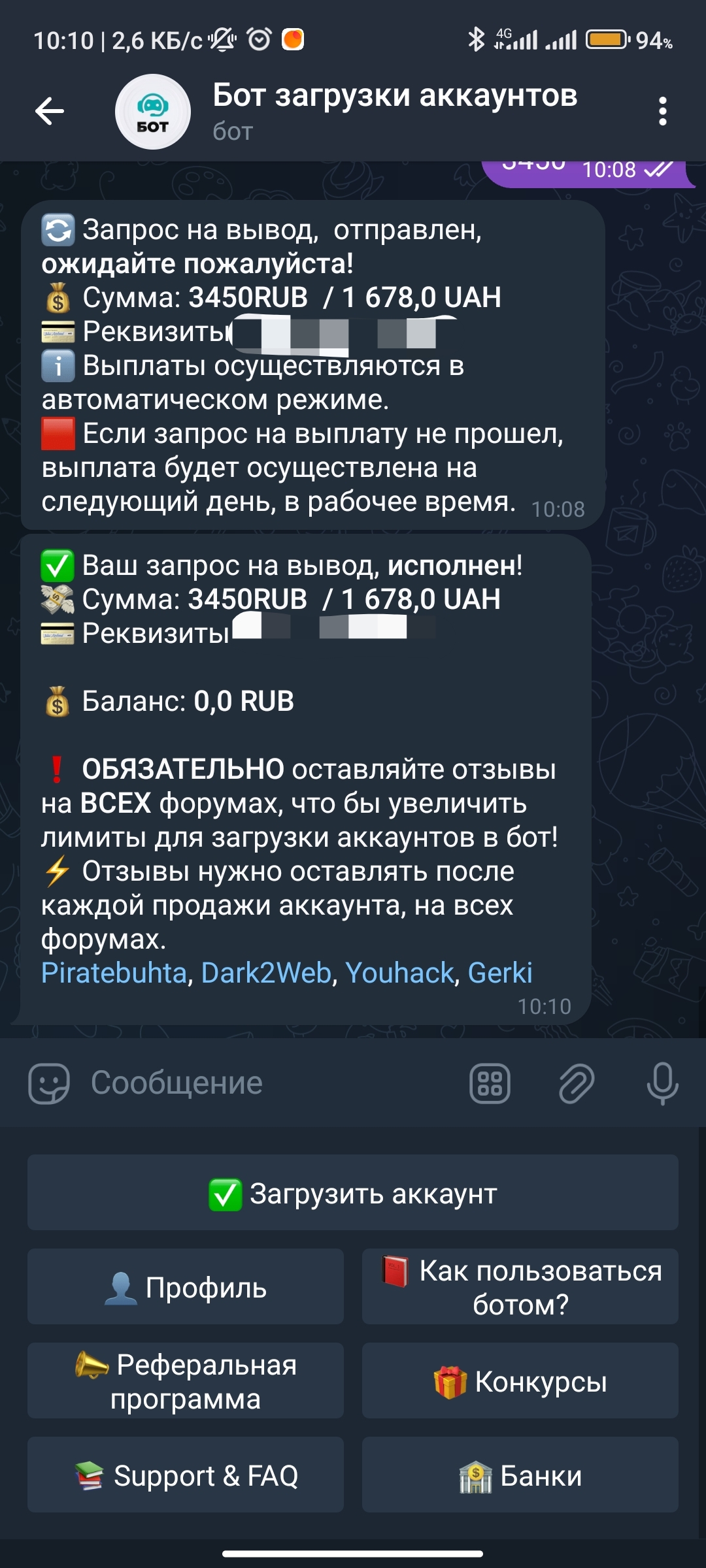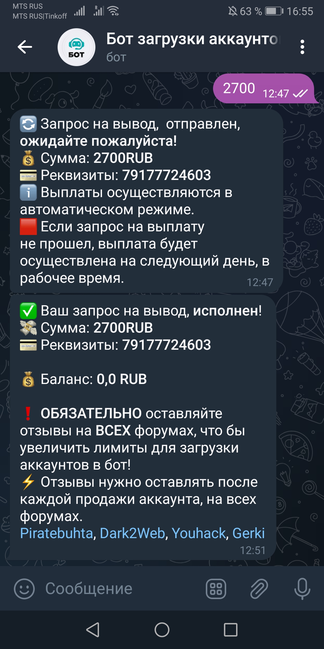 Спасибо ребятам, за очередную выплату. Бот СУПЕР. Всегда платит, проблем нет. Советую к работе!
