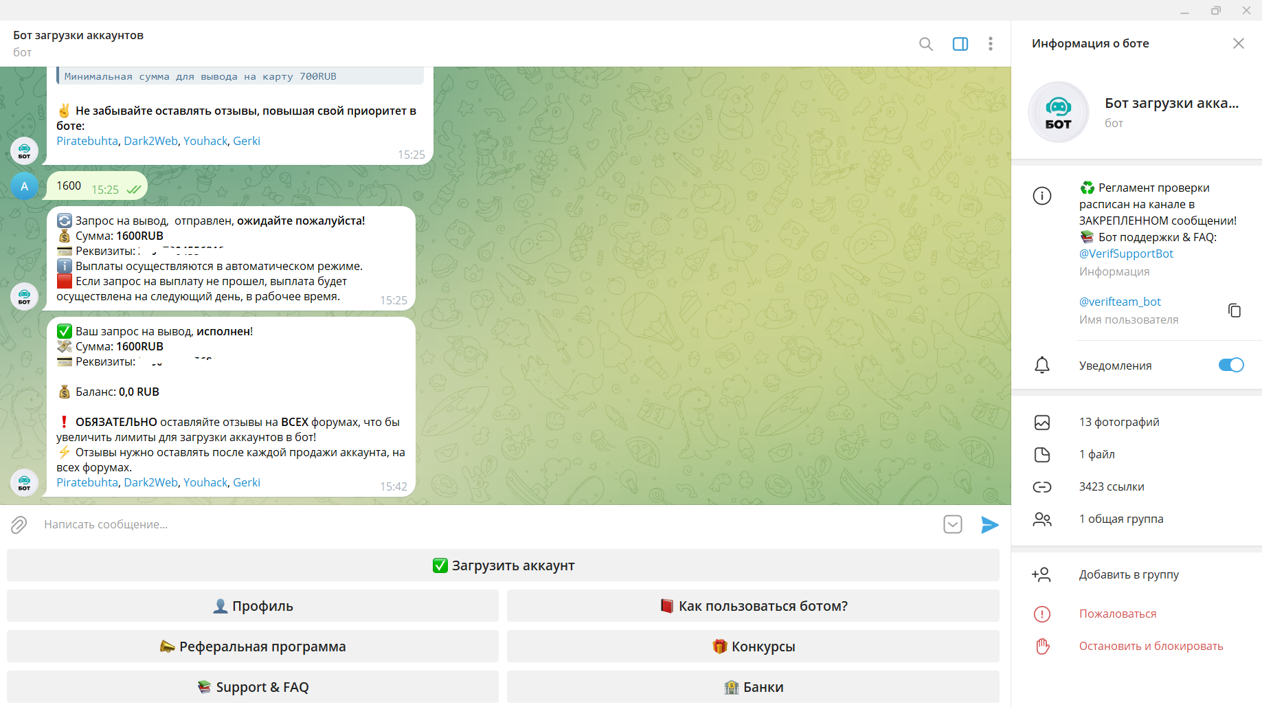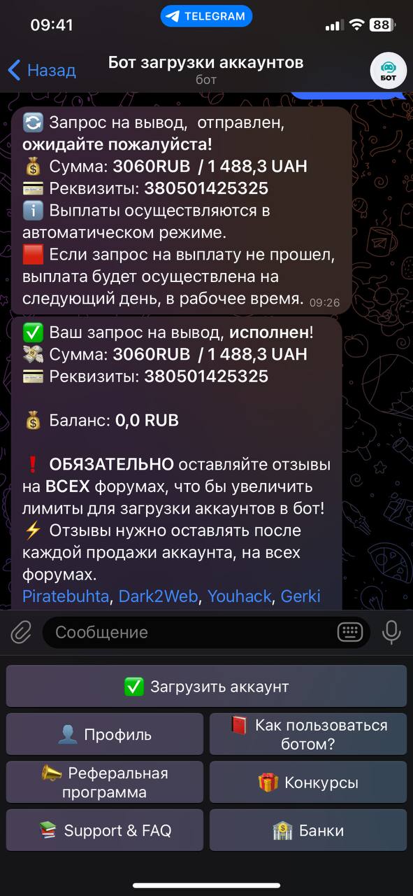 atlet190 Новорег 220 0 9 Фев 2023 12 Дек 2023 #635 Продал в бот аккаунт и получил оплату, все честно и оперативно. Всем рекомендую данный бот. Вложения image-08-12-23-09-16.png 58.5 KB Скачано: 148 Снимок экрана (260).png 533 KB Скачано: 178