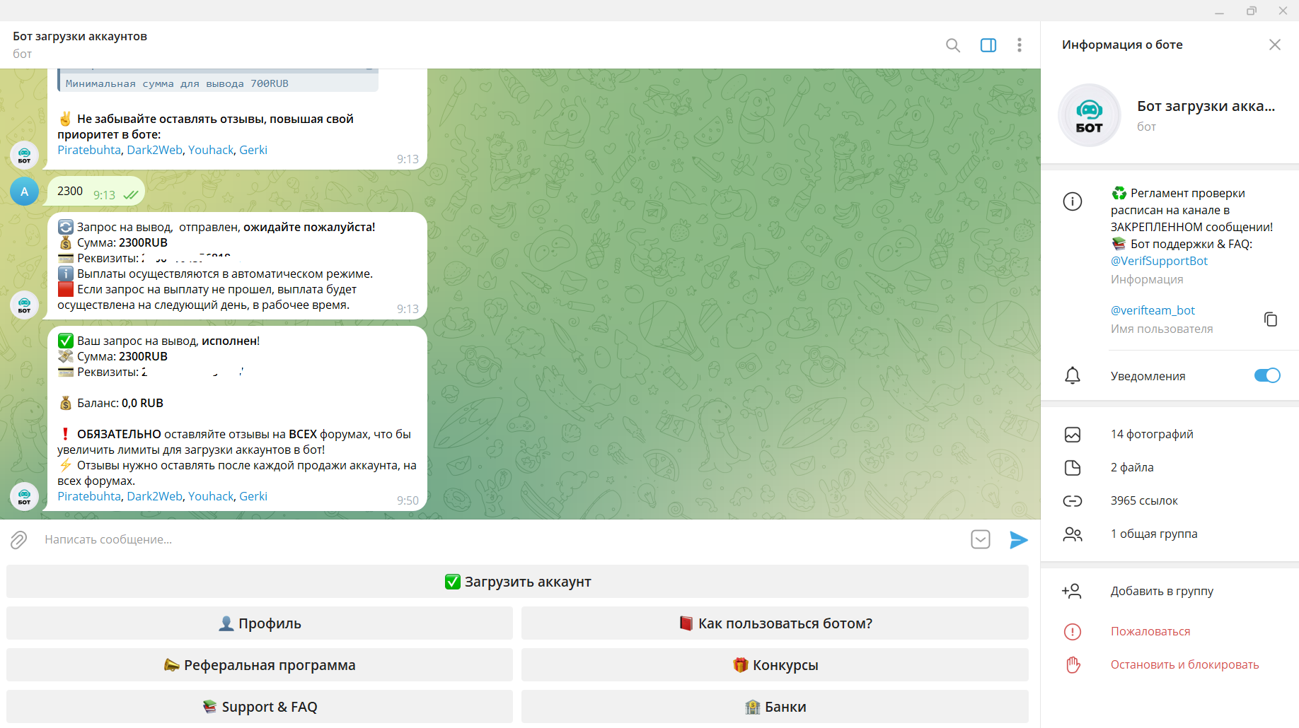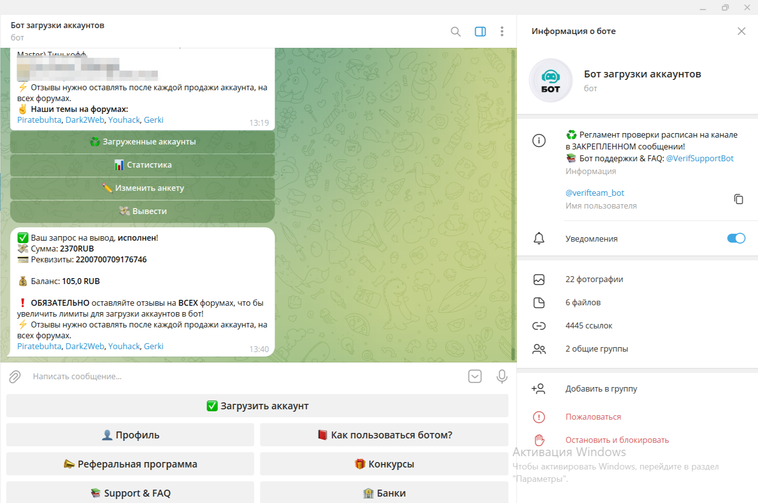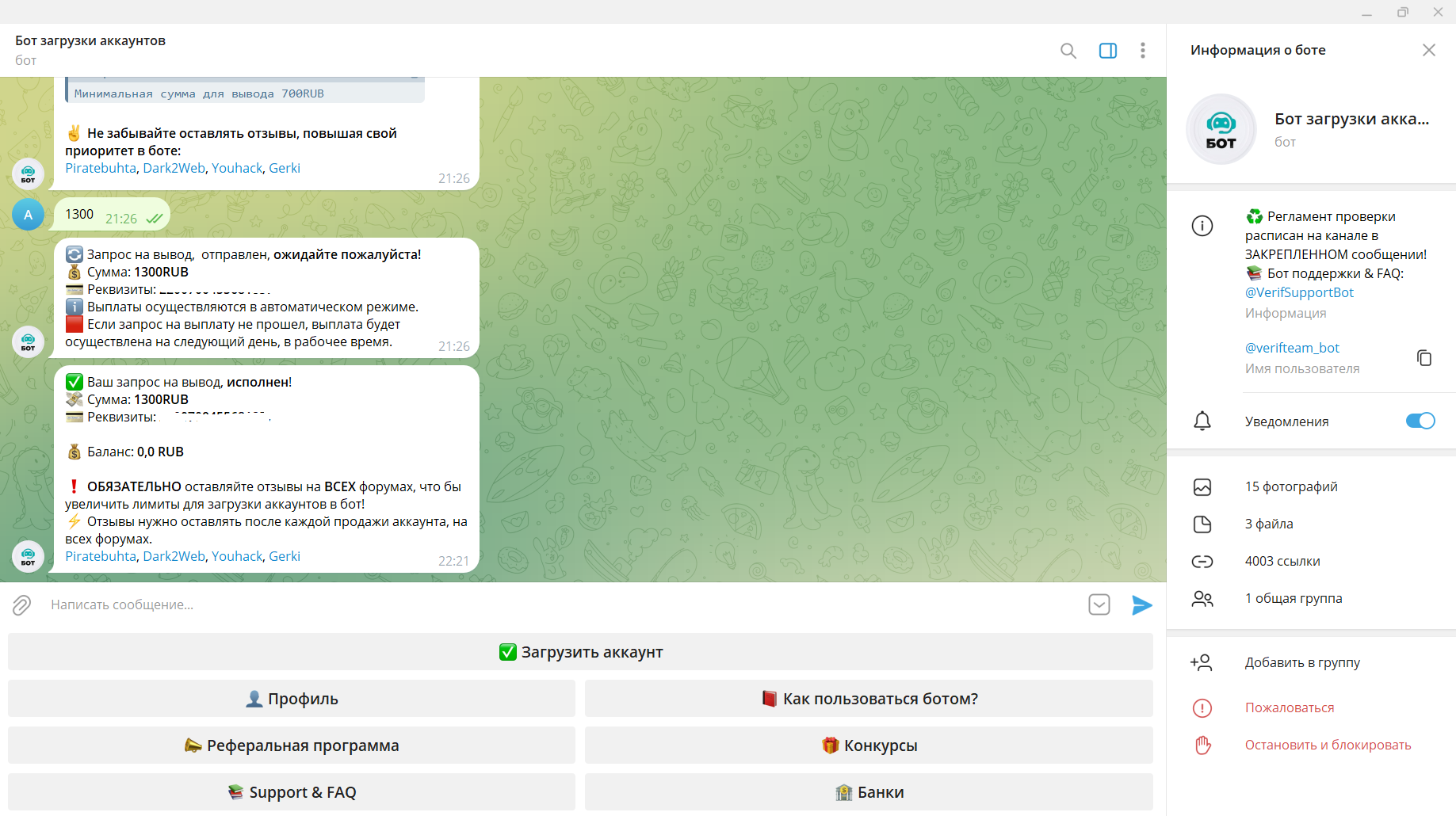 temirovna952 Новорег 40 0 17 Авг 2023 12 Янв 2024 #678 очередная продажа аккаунта, и деньги тоже поступили быстро на кошолек 🥳🥳 Verificator написал(а): Посмотреть вложение 17806 Посмотреть вложение 17807 Нажмите для раскрытия... Вложения Screenshot_2024-01-12-19-23-44-057_ru.mw.jpg 87.6 KB Скачано: 136 Screenshot_2024-01-12-19-17-17-218_org.telegram.messenger.jpg 470.7 KB Скачано: 132 Screenshot_2024-01-12-19-17-04-321_org.telegram.messenger.jpg 477.8 KB Скачано: 143
