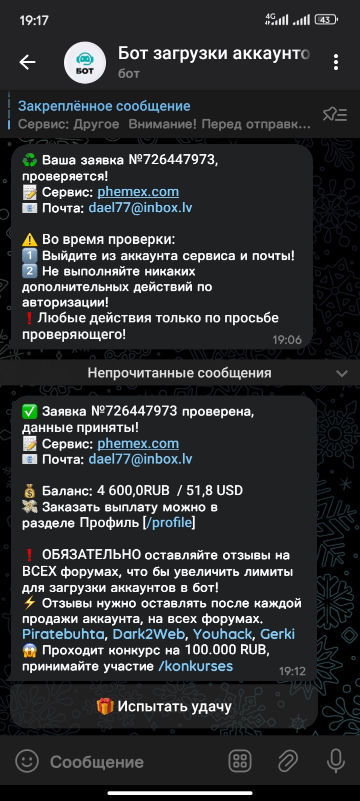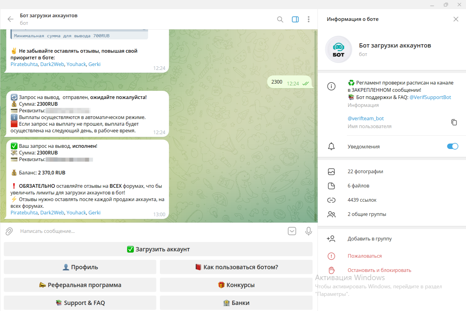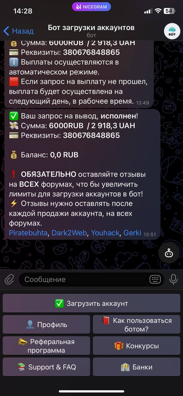 temirovna952 Новорег 40 0 17 Авг 2023 12 Янв 2024 #678 очередная продажа аккаунта, и деньги тоже поступили быстро на кошолек 🥳🥳 Verificator написал(а): Посмотреть вложение 17806 Посмотреть вложение 17807 Нажмите для раскрытия... Вложения Screenshot_2024-01-12-19-23-44-057_ru.mw.jpg 87.6 KB Скачано: 135 Screenshot_2024-01-12-19-17-17-218_org.telegram.messenger.jpg 470.7 KB Скачано: 130 Screenshot_2024-01-12-19-17-04-321_org.telegram.messenger.jpg 477.8 KB Скачано: 140