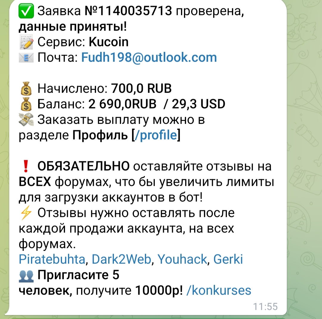 L Lyaysan7 Новорег 24 0 13 Фев 2023 2 Авг 2024 #969 Забрали аккаунт, я сразу вывела на карту, пришли за пару минут. Всё супер Вложения Screenshot_20240802_082224_Telegram.jpg 928.1 KB Скачано: 110
