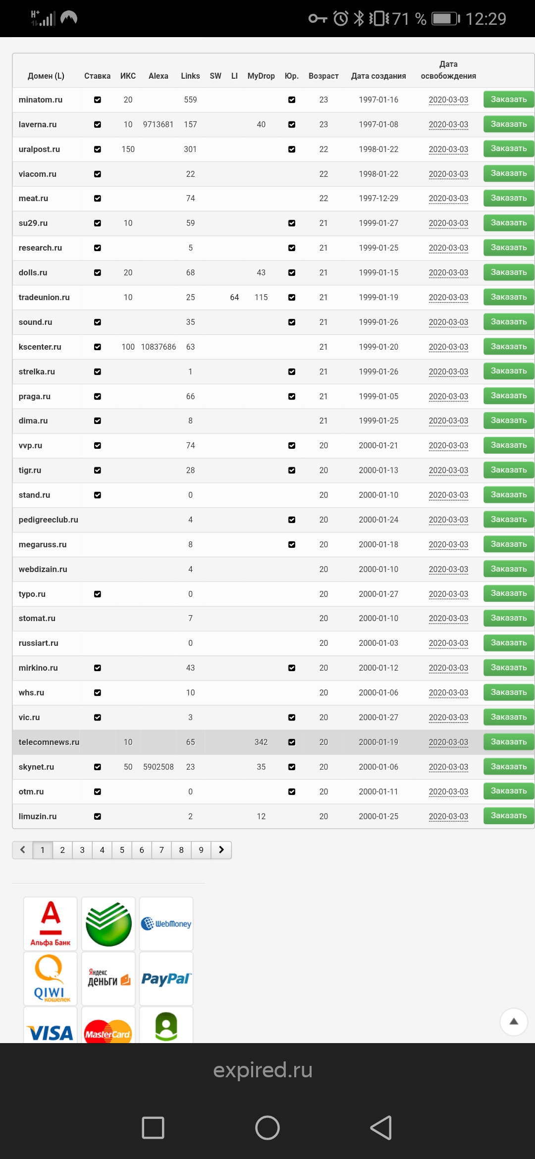 Посещаем сайты доменах регистраторов. Заходим в раздел "Освобождающиеся домены". Он выглядит примерно так: