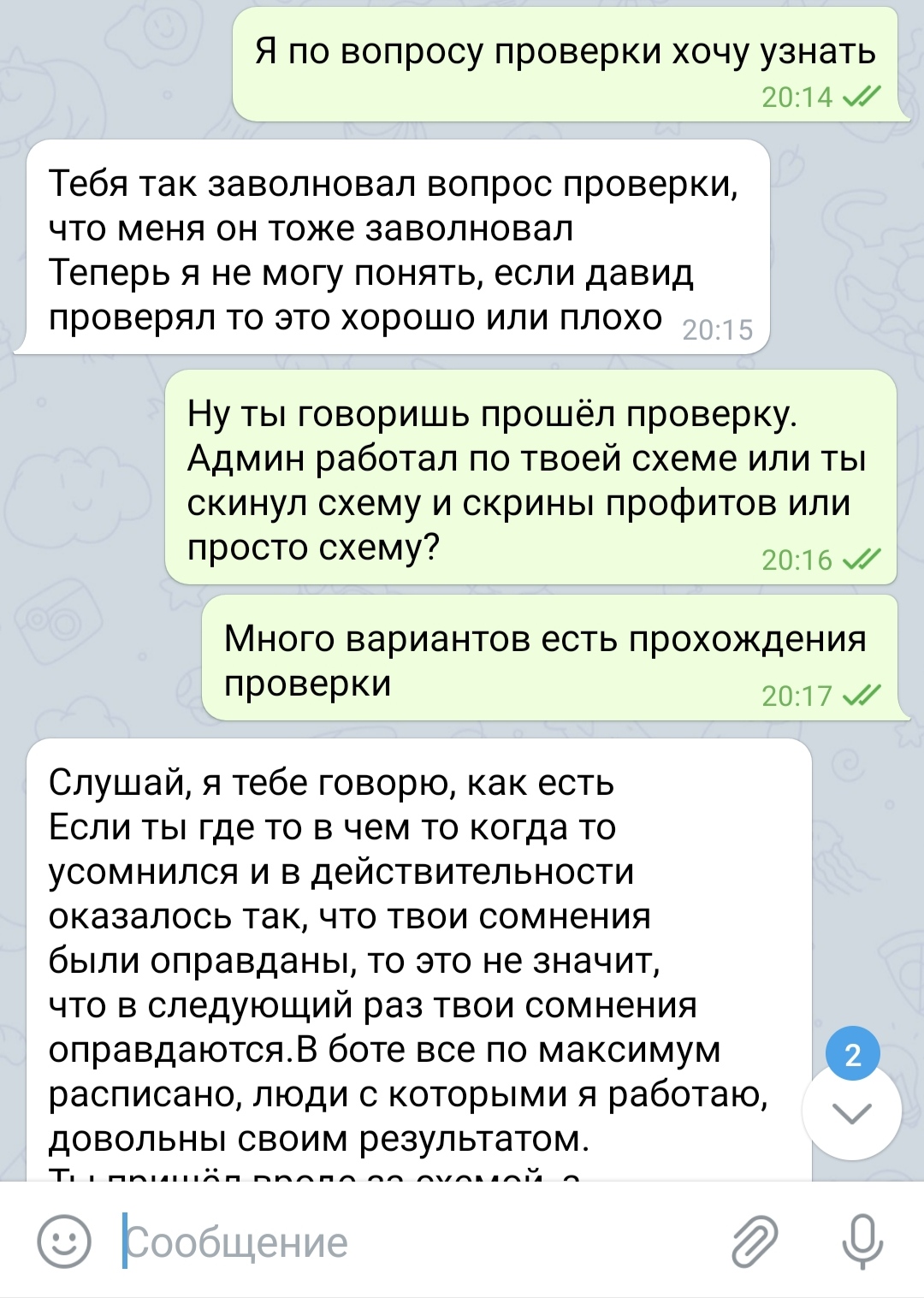 2. Утверждая что администратор у которого он проходил проверку Работал по его схеме, но пруфов предоставить не смог. Даже внятно объяснить каким образом проходила проверка не смог.