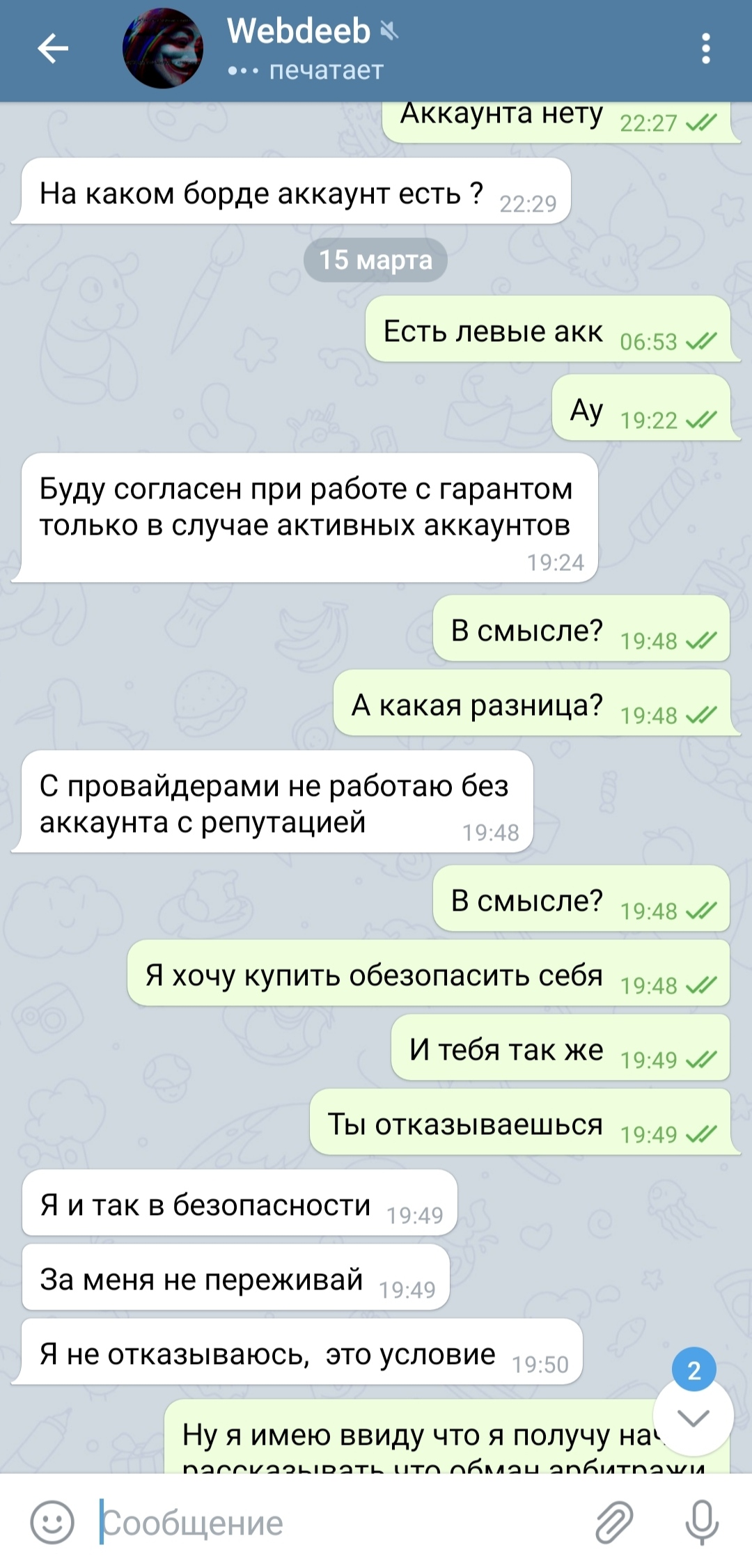 6. На вопрос отказ ли работать через гаранта основан в связи с отсутствием аккаунта, не отвечает, и начинает искать новые причины отказа.
