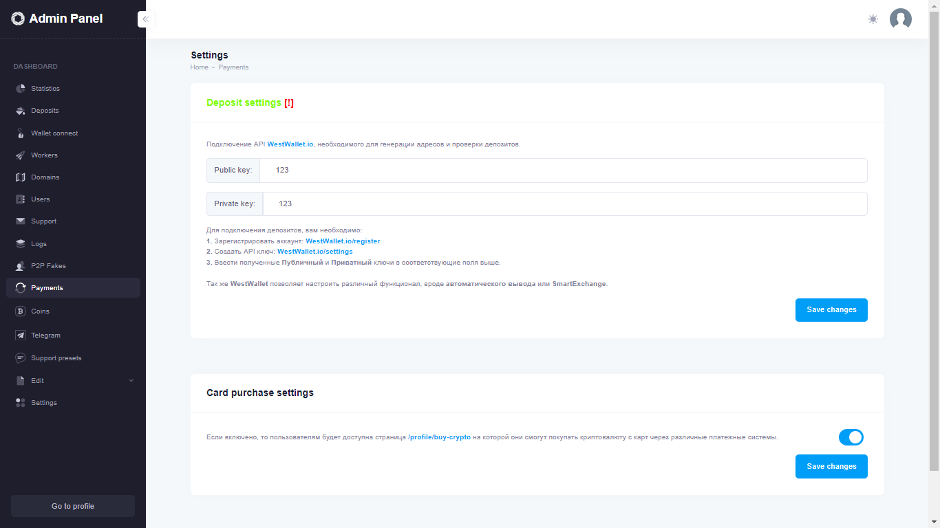 - Мерч для обработки платежей WestWallet ( проверка / зачисление )
