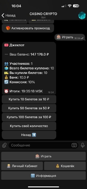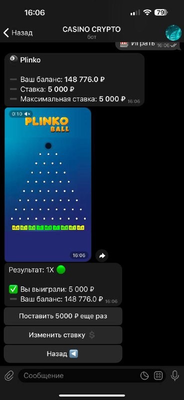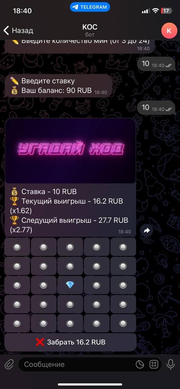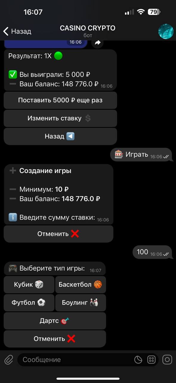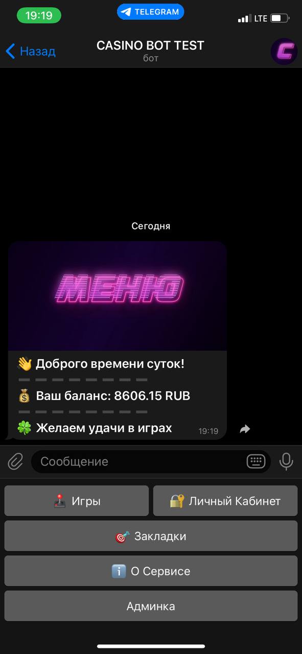 Функционал Бота:- 7 игр с ботом ( Кубик /Рояль / Джекпот / Слоты / Мины / Plinko )