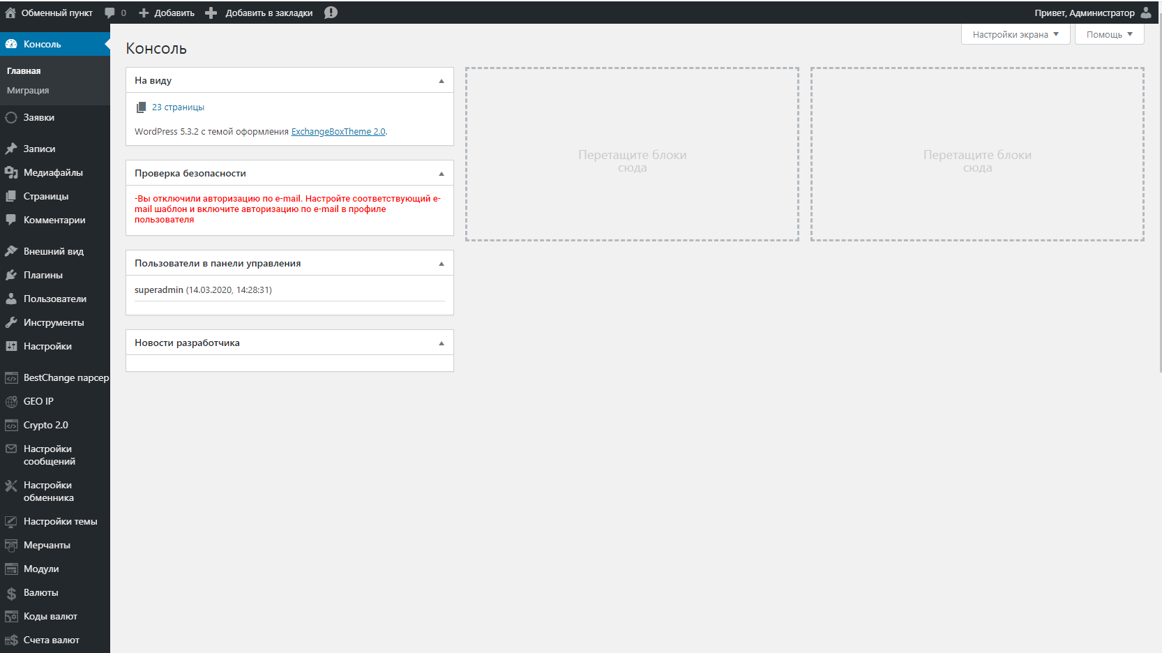 - Бесплатные мерчанты , которые входят в базовую стоимость скрипта обменного пункта: WebMoney, Perfect Money, NixMoney, Advanced Cash, Capitalist, Livecoin, E-Pay, AskBtc.org, PayKassa.pro, BitexBook code, Adgroup. Добавьте скрипт ExchangeBox в корзину, чтобы получить эти мерчанты бесплатно.