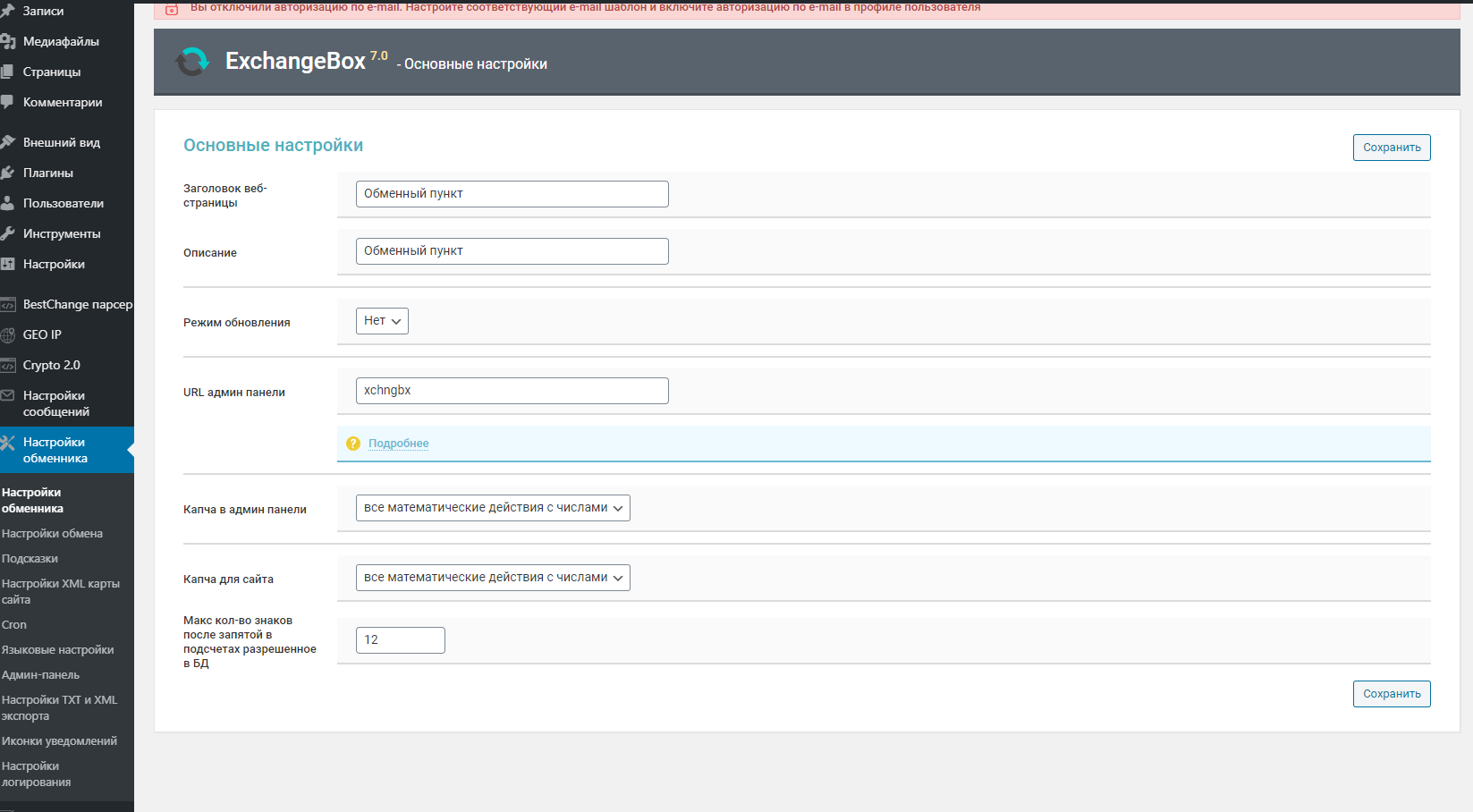 - Установка курса, минимальной суммы, комиссии платежной системы по каждому направлению обмена;