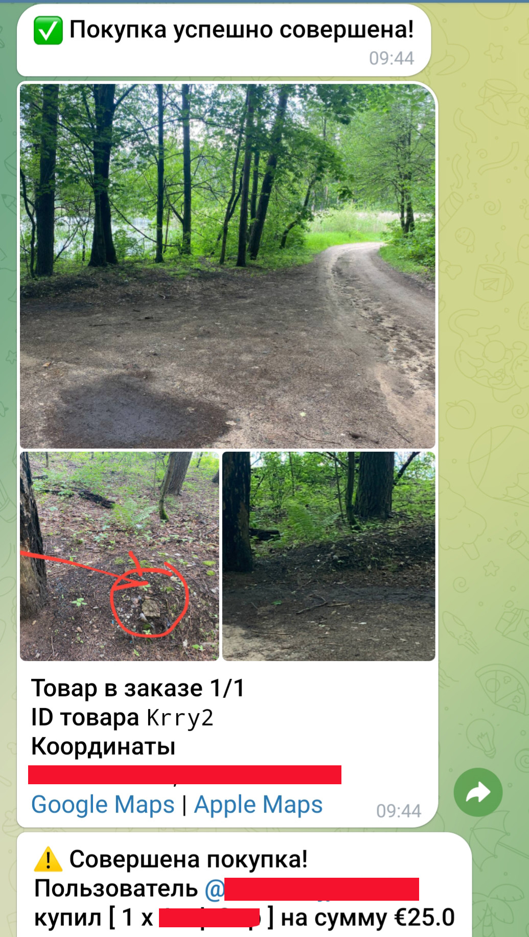 - выдача товара покупателю в нужном для вас формате (текст/файл/фото+текст/Telegram MediaGroup формат) / дефолтно 2-3 фото + координаты + уникальный рандомный ID товара