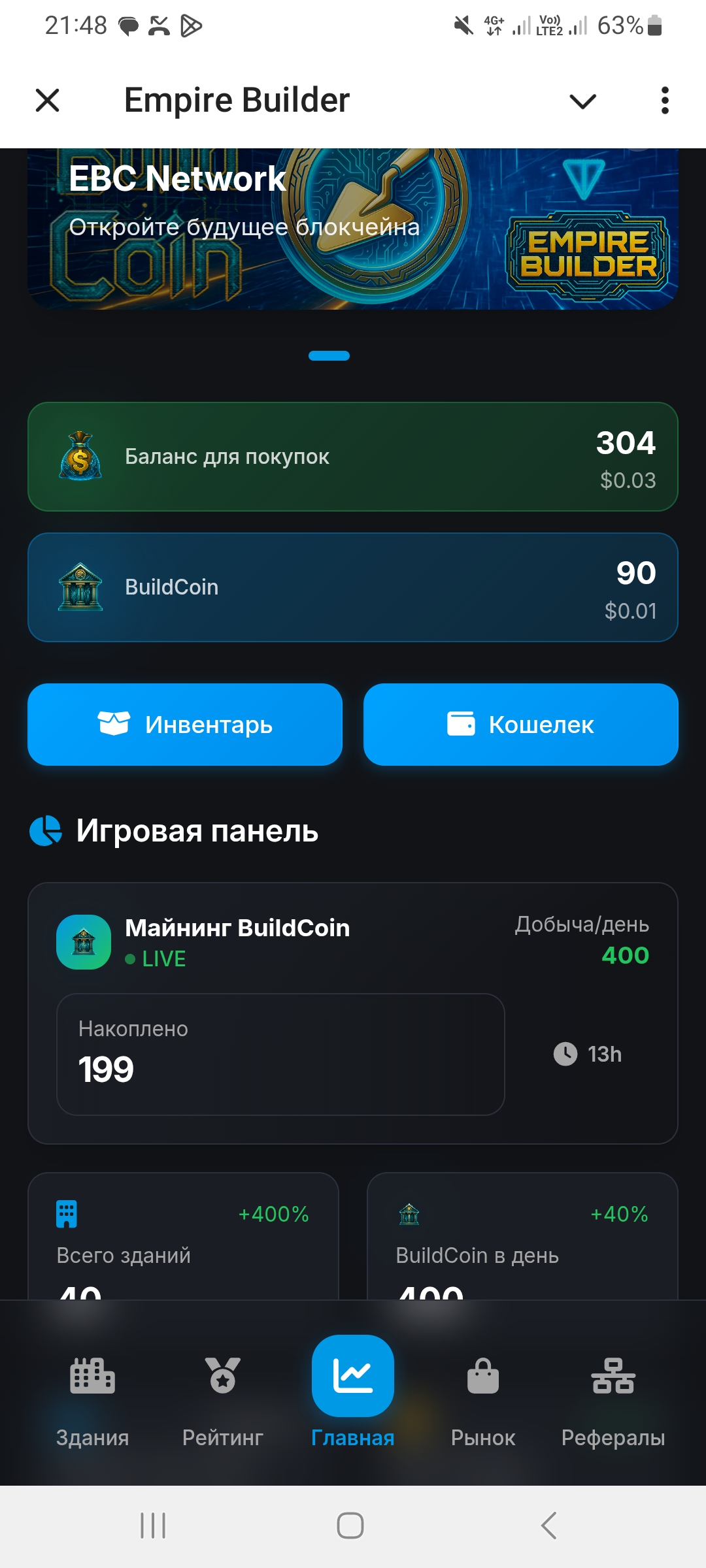 Всем привет , нашел отличный бот майнер оффлайн , выполняем задания типа подписок ,получаем токен EBC , покупаем на них здания и собираем раз в 24 часа прибыль EBC , как только накопим 10000 EBC можно обменять на 1 доллар и вывести ,а можно на 10000 EBC купить еще зданий и увеличить доход, донатить не обязательно ,вывод работает как часики