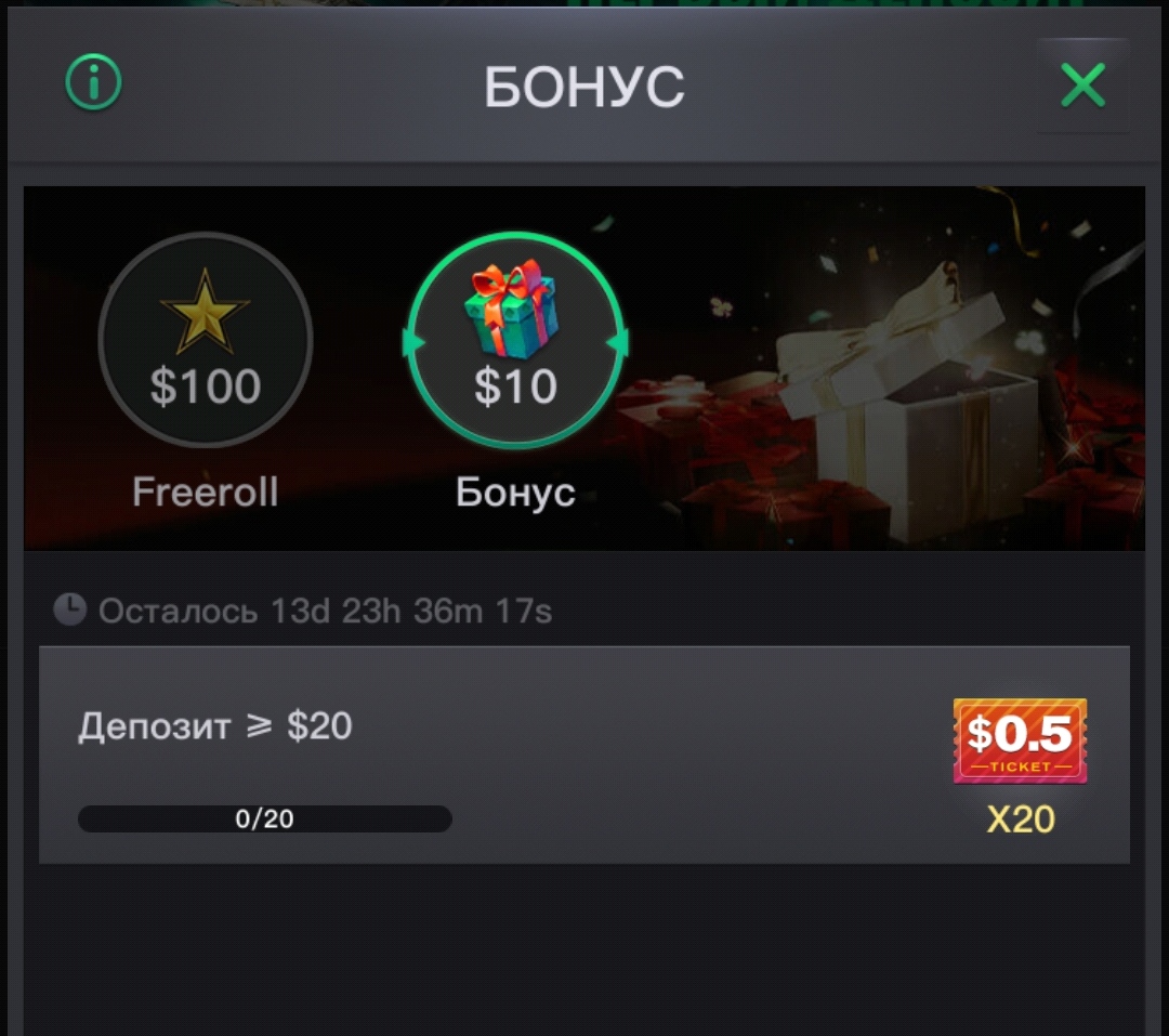 Дают 10 карточек по 0,5 бакса,отыгрываются очень легко,я не особо разбираюсь в покере,отыграл их за 10 минут на 14 $
