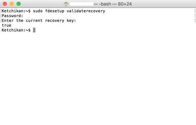 Причин неудачной проверки может быть несколько: либо ключ набран неверно, либо скопирован неверно, либо поврежден. Если вы уверены, что ключ верный, необходимо зайти в настройки File Vault, отключить эту функцию и повторить весь процесс, начиная с шага 2.