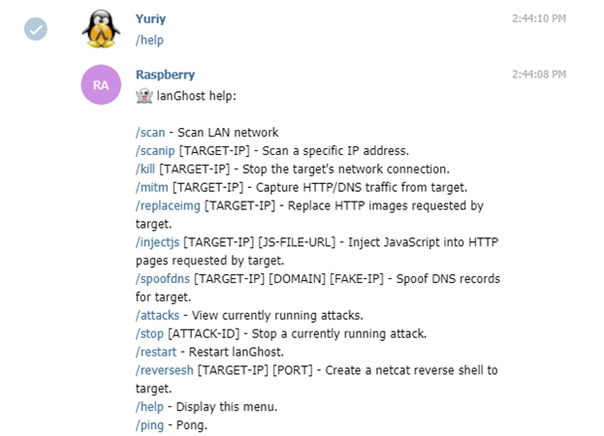 Полагаю, список команд не нуждается в подробном описании, кому интересно посмотреть видео использования lanGhost, на странице разработчиков на Github есть необходимые подробности: