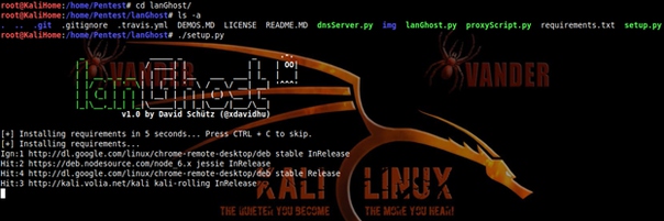 Для начала установим LanGhost, я использую, как обычно Kali Linux, LanGhost не прожорлив, можно закинуть его и на Raspberry, чтобы он мониторил сеть и отчитывался о новых подключениях и все такое. Но я этого делать не буду.