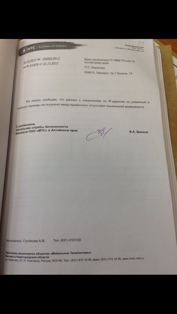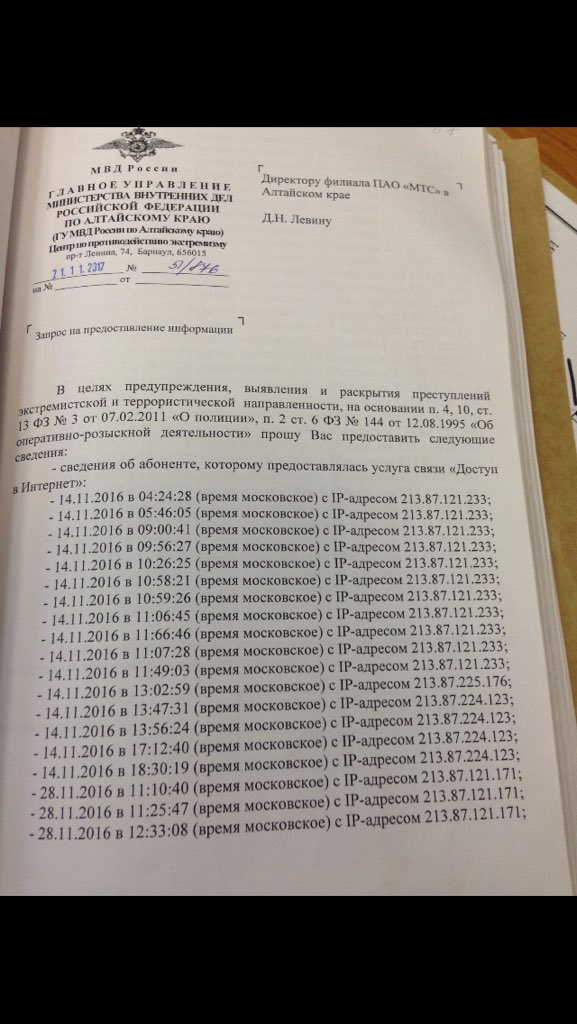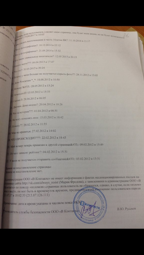 Мотузная опубликовала у себя в твиттере материалы дела, из которых видно, что администрация соцсети передала следователям информацию: