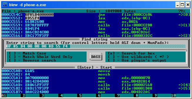 копируем EXE-шку phone-a.exe в папку с файлом biew.exe
