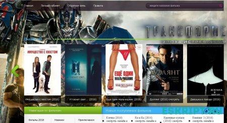 За основу взят движок DataLife Engine с кодировкой utf-8 с поддержкой новых тегов DLE, также установлен модуль oRating-v3 by Sander для оценки фильмов,в интернете полно бесплатных шаблонов для онлайн кинотеатров,вы можете оставить данный или загрузить новый под себя.